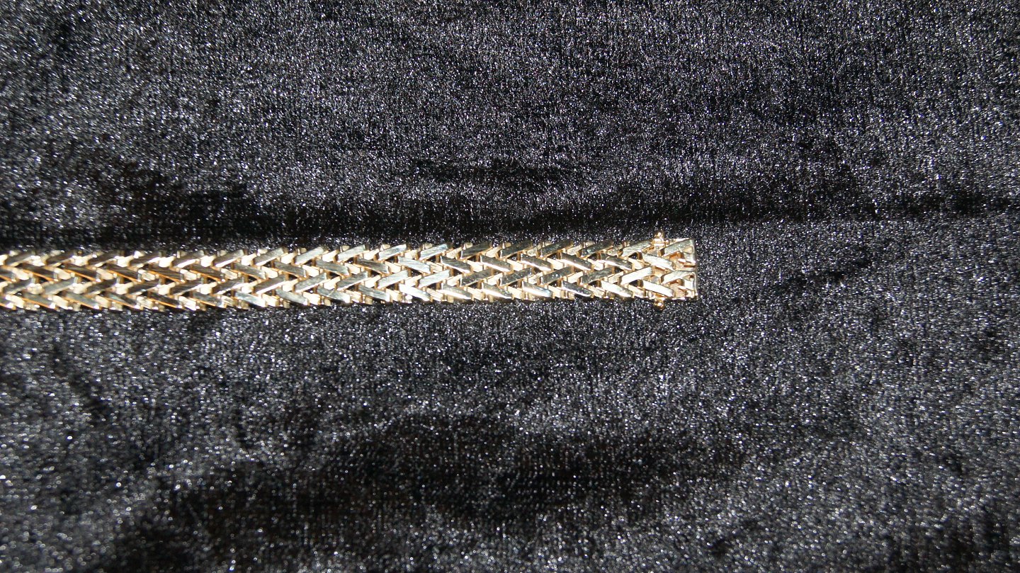 Elegant Bracelet 14 Carat Gold Stamped AAA 585 Length 18.8 Cm Width 8.66 mm Thickness 1.88 mm Nice and well maintained condition The item has been checked by a jeweler and is not physically found in our store