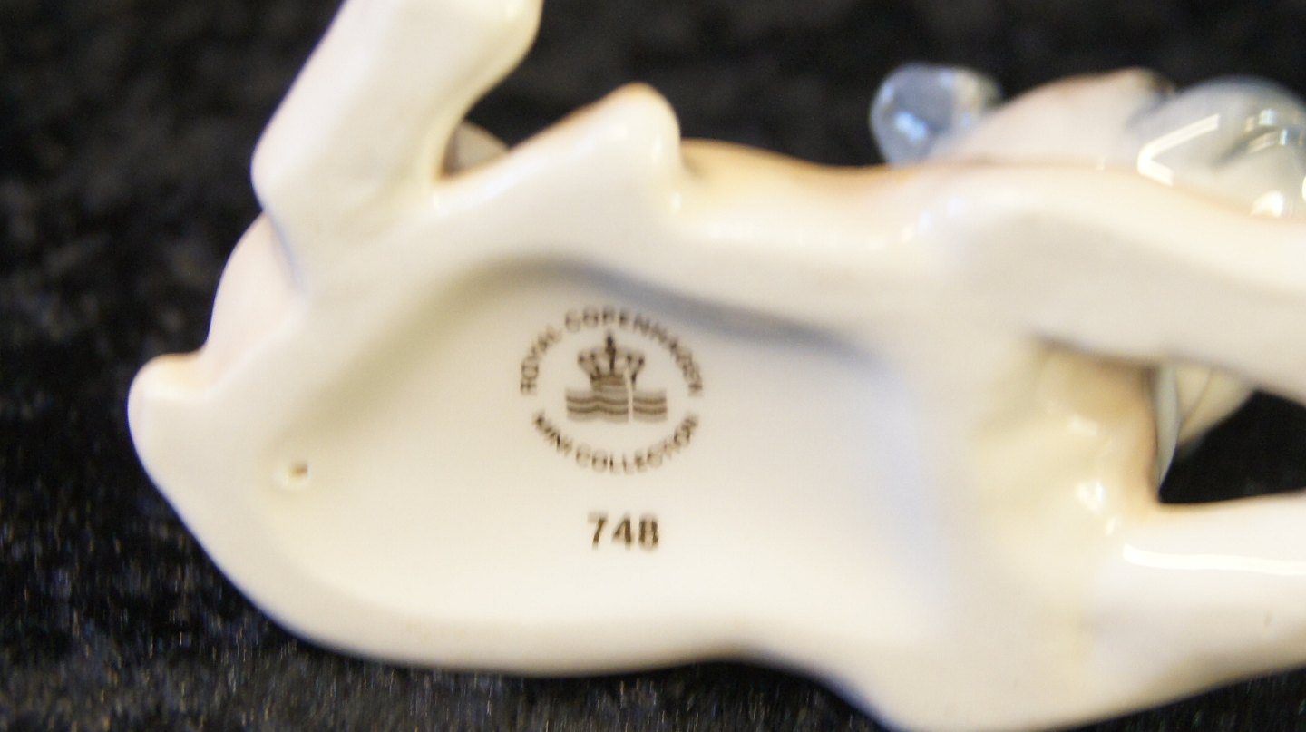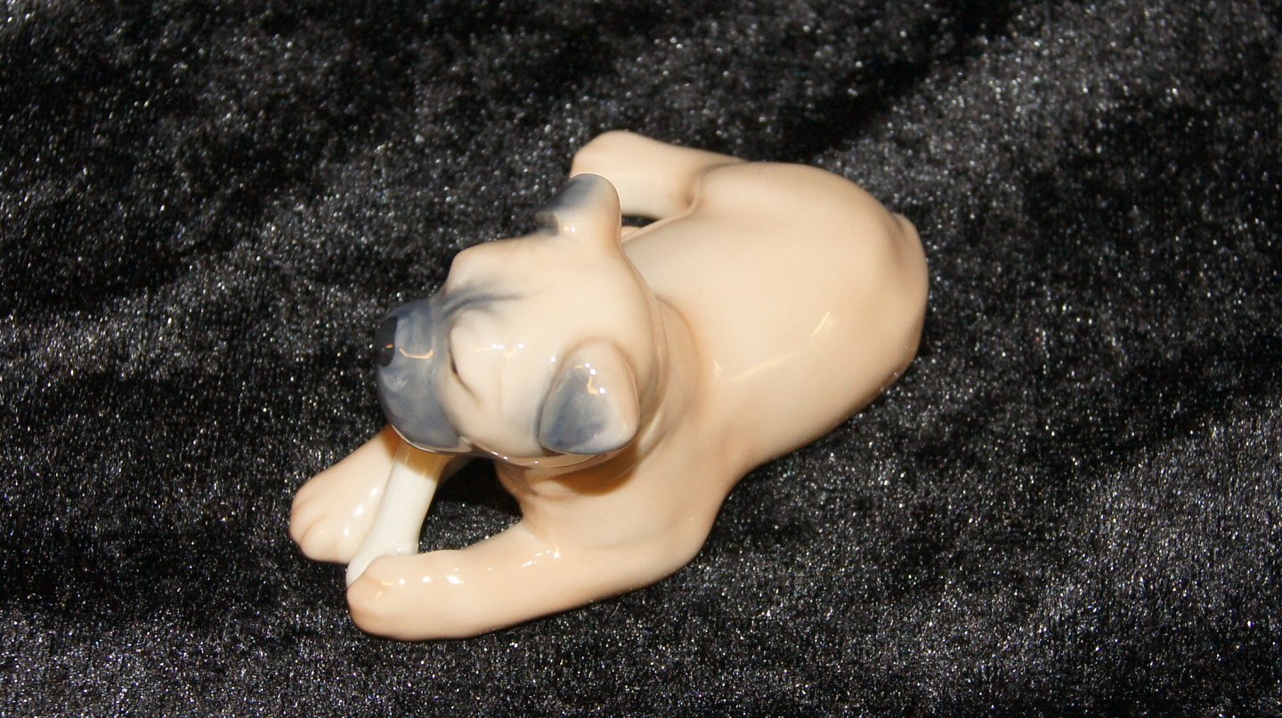 Royal Copenhagen Boxer with meat bones Deck # 748 Mini Collection Length 8.5 cm Nice and well maintained condition