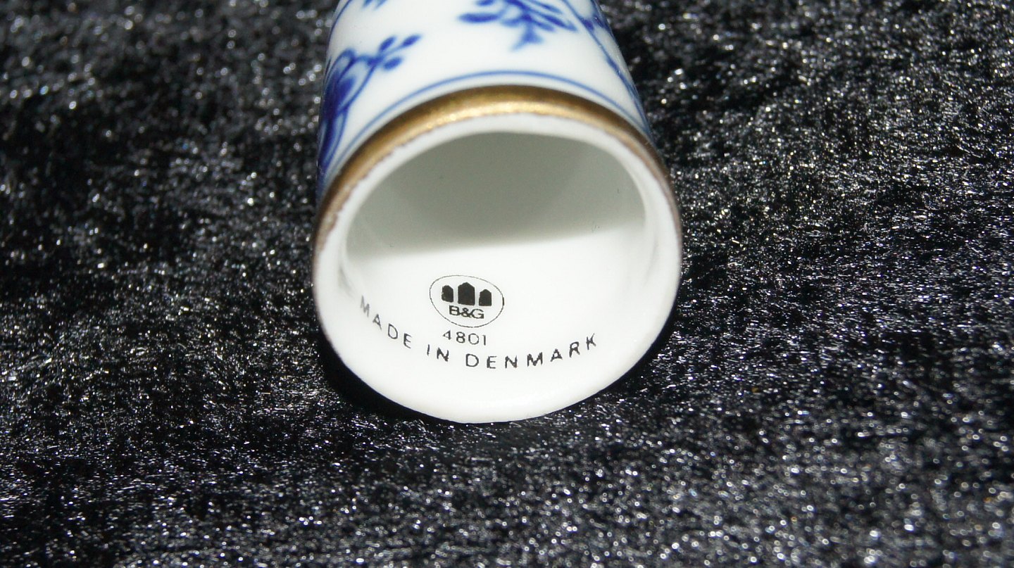 Bing and Grøndahl Thimble #Blue painted / mussel painted with gold edge Dec. No. #4801 Height 2.6 cm 1. Sorting Nice and well maintained condition