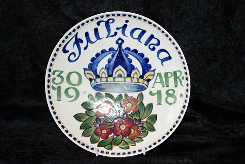 Aluminia Juliane Platter. Udgivet i anledning af den hollandske dronnings fødsel den 30. April.