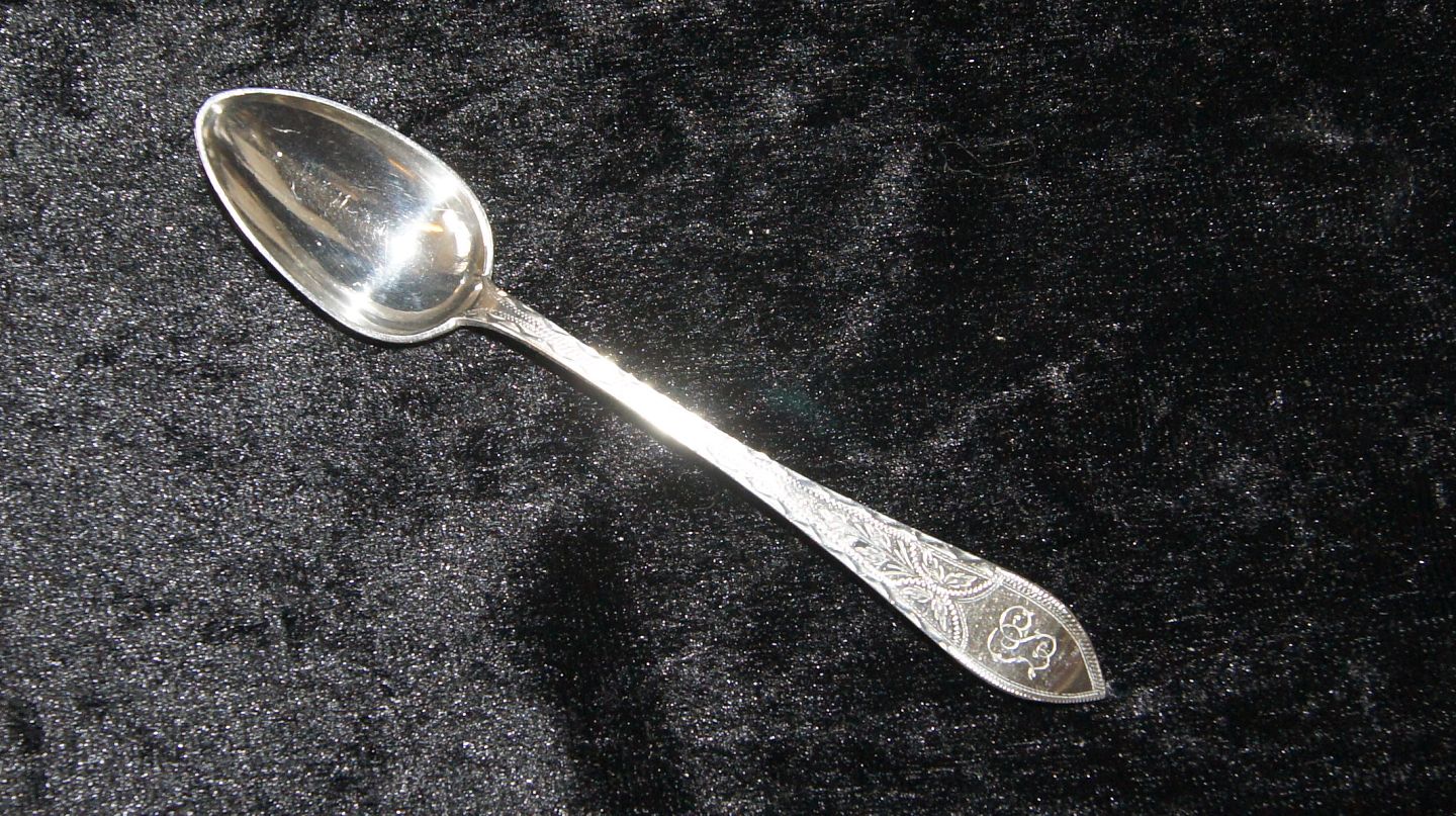 Teaspoon Large Empire Silver with engraved initials Length 13.6 cm. Well maintained condition Polished and packed in bag