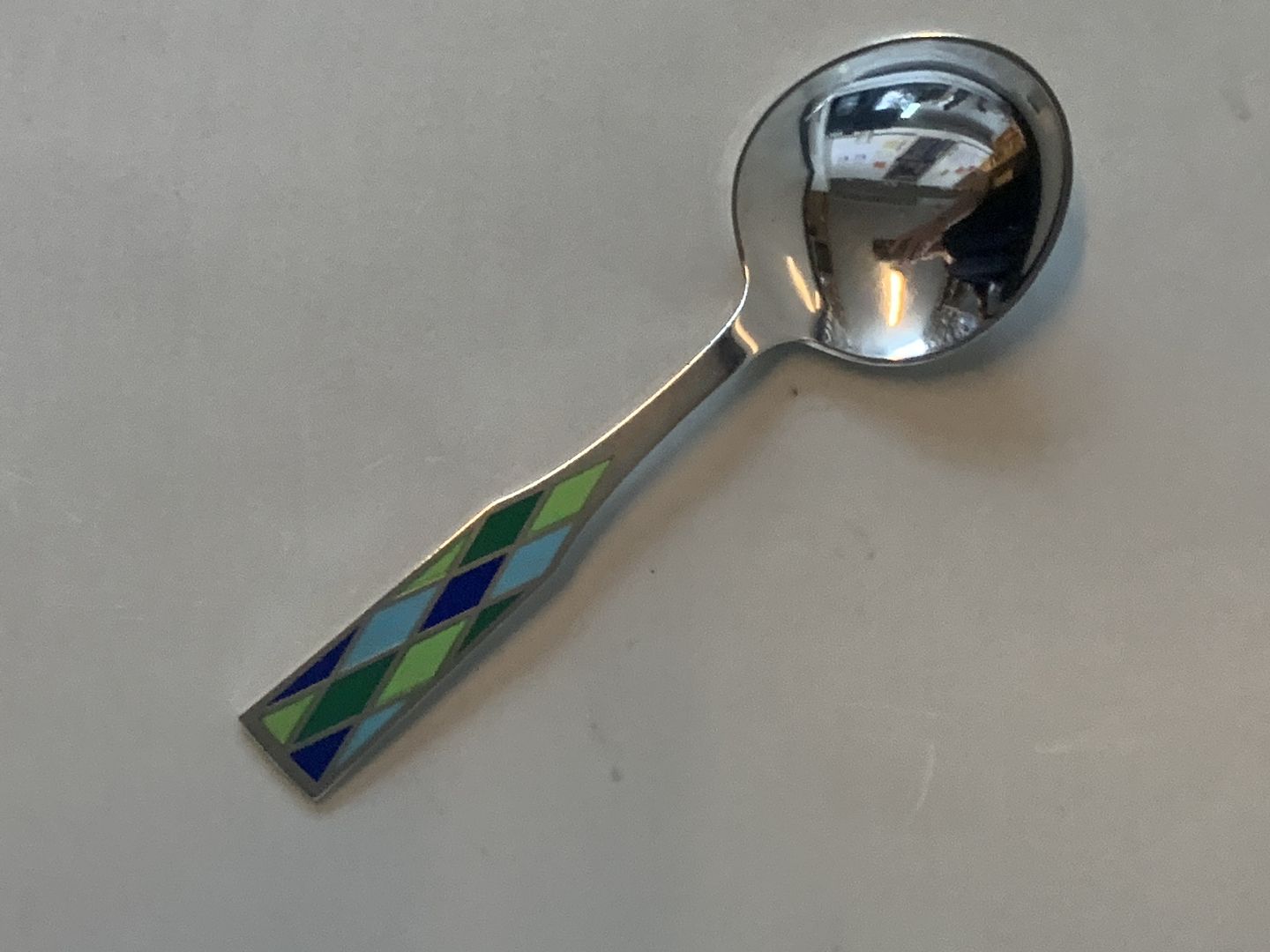 Georg Jensen Harlequin #marmeladeske With Enamel Length 12 cm. Well maintained condition Polished and packed in bag