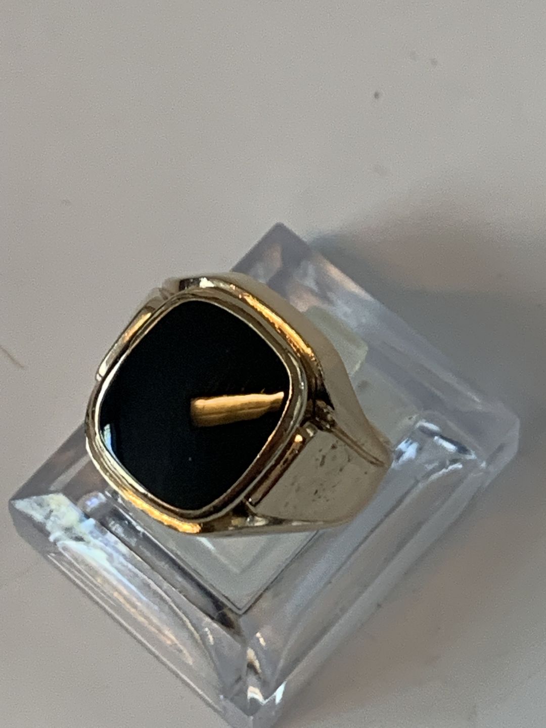 Guldring med Sort Onyx 14 karat Stemplet: 585 Størrelse: 67. Flot og velholdt Ringen er tjekket af guldsmed Varen findes ikke fysisk i forretningen Kontakt os for fremvisning