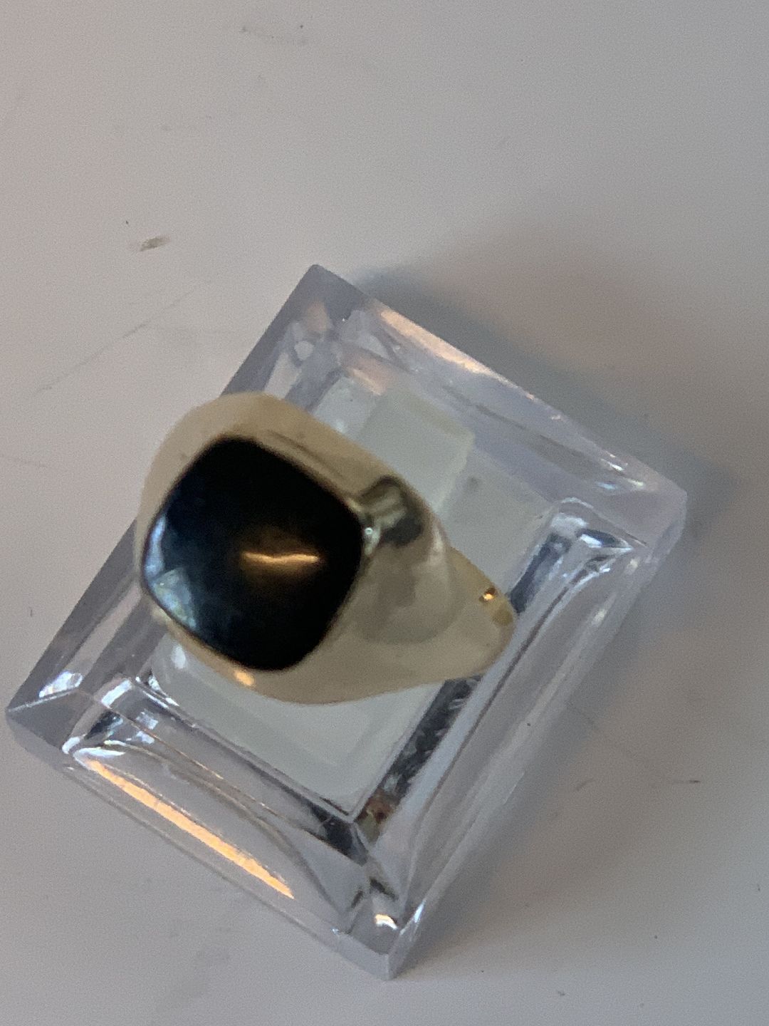 Signetring i 14 karat guld med sort onyx Stemplet SEJ 585 Størrelse 69 Pæn og velholdt stand Tjekket af guldsmed, Smykket findes ikke fysisk i butikken, men kan fremvises efter ønske. Kontakt os gerne for en fremvisning.
