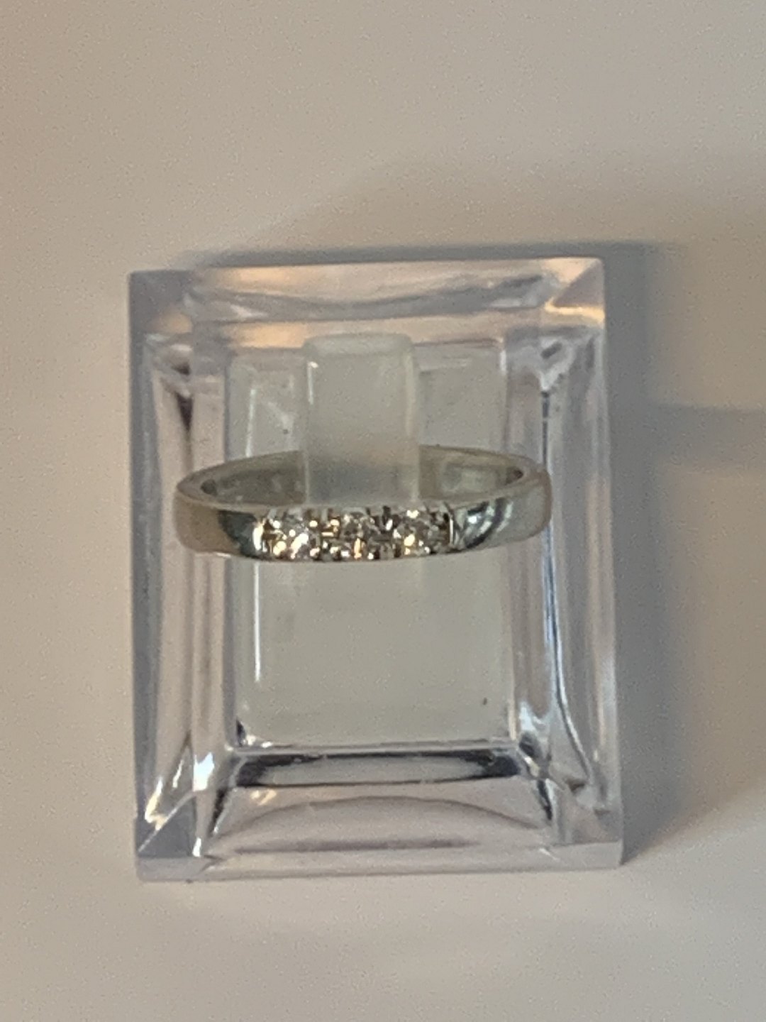 14 karat hvidguld, alliancering med brillanter Stemplet BLA 585 Størrelse 57 Tjekket af guldsmed Flot og velholdt stand. Varen findes ikke fysisk i butikken. Kontakt os for fremvisning