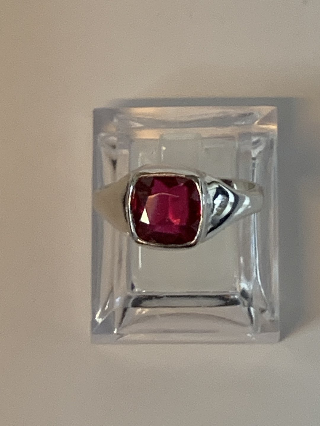 Ring with red stone in 14 carat white gold.