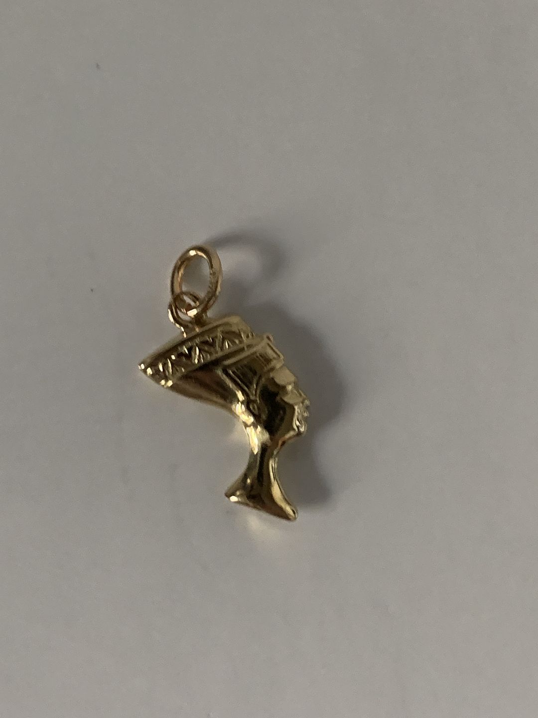 Nefertiti Vedhæng / Charms i 14 karat guld Stemplet 585 Højde med øsken 25,40 mm Pæn og velholdt stand Smykket tjekket af guldsmed Varen findes ikke fysisk i butikken, kontakt os for fremvisning.