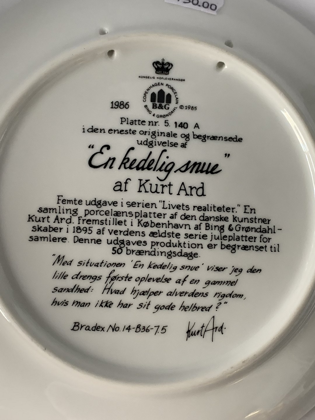 Bing og Grøndahl #1986 " En kedelig Snue" Af Kurt Ard Dek nr #5 #140 A Måler 20,7 cm Pæn og velholdt stand