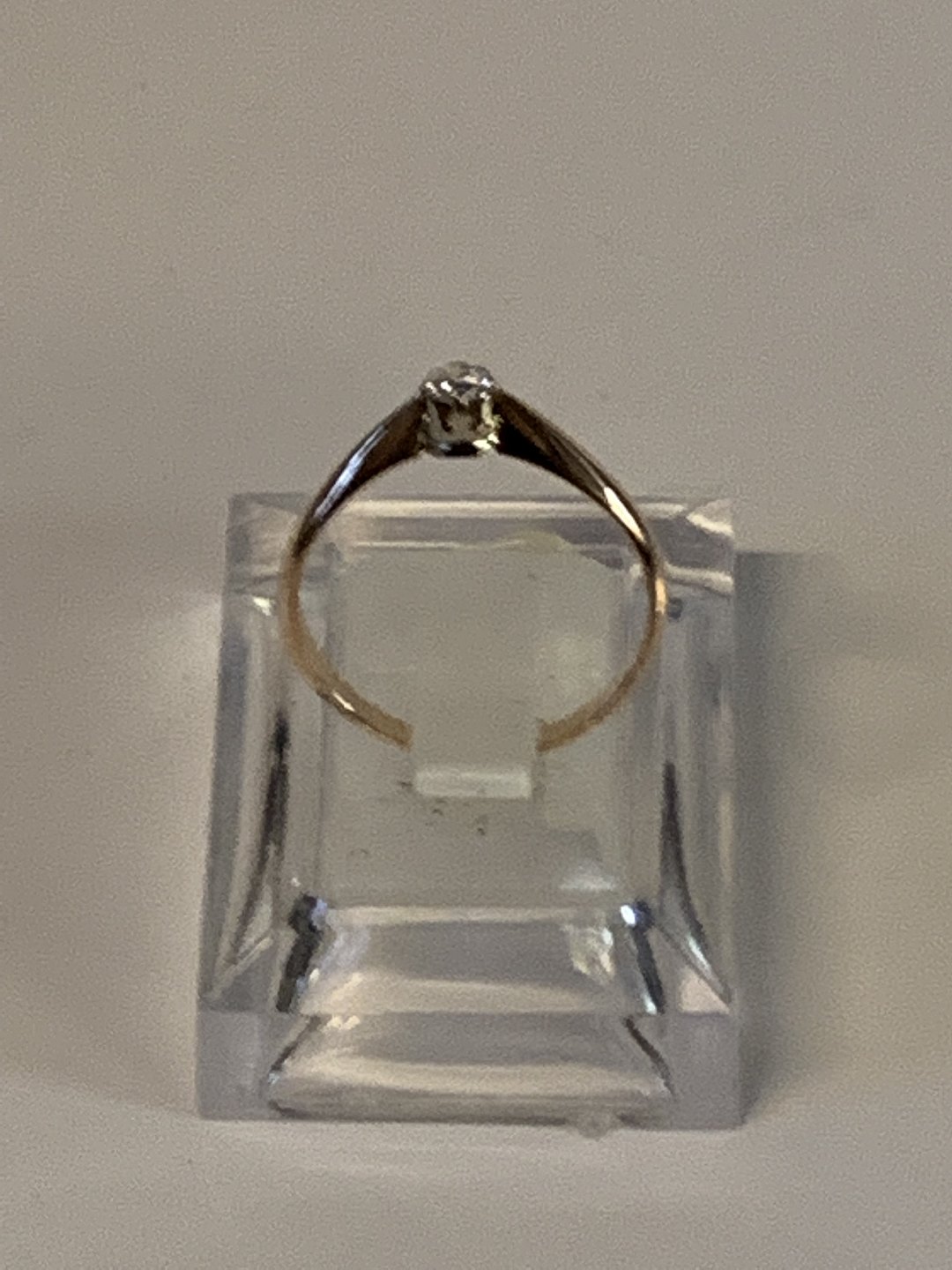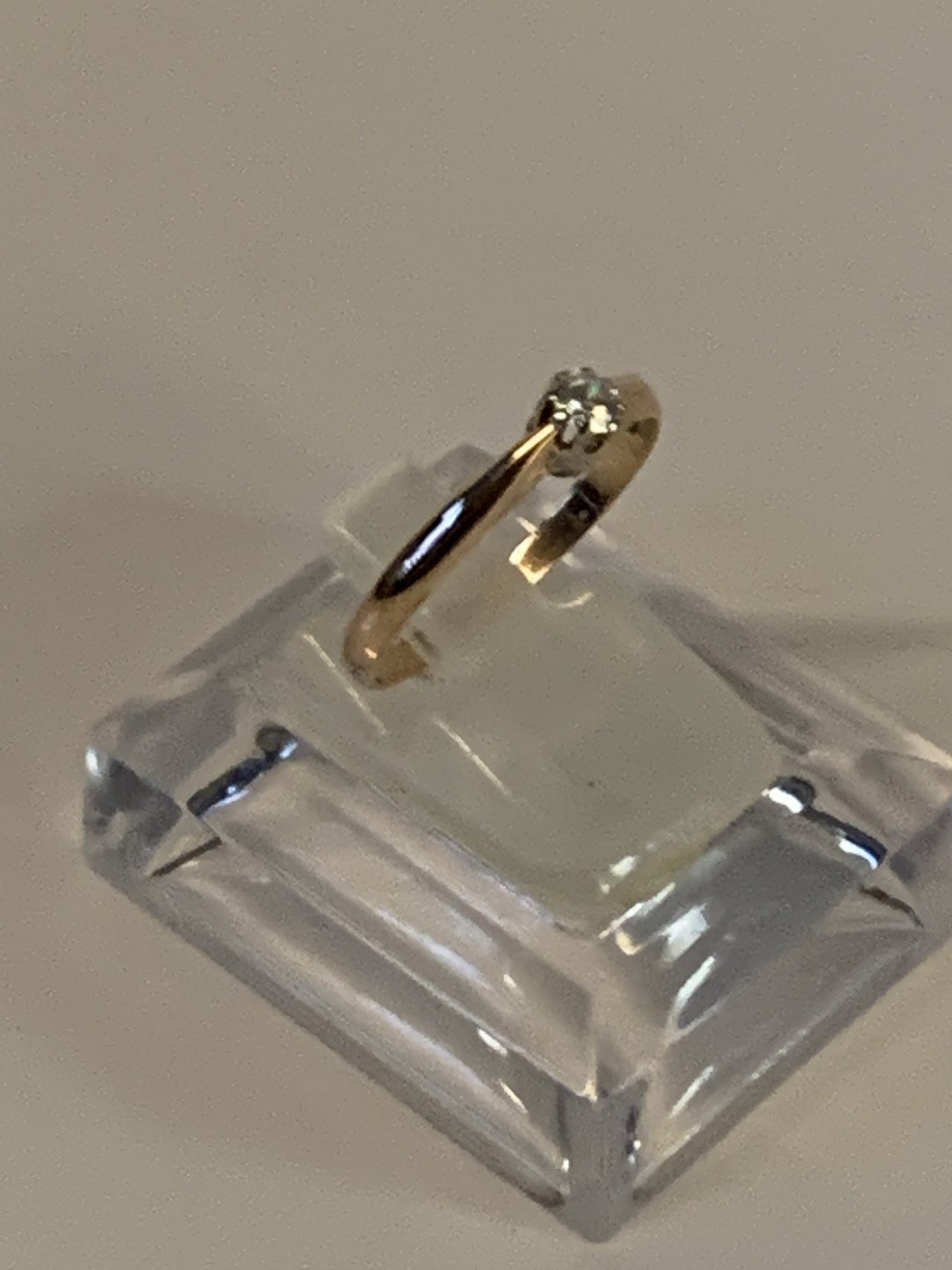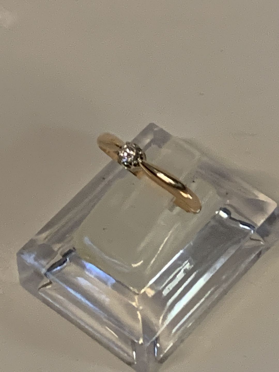 Princess ring with inlaid clear stone, 14 Karat