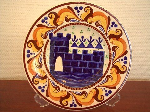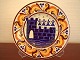 Two Aluminia Town Arms Plates from 1905. Diameter 25 cm. Perfect condition. We have many other plates from other cities. In the 1880s when production at the Royal Copenhagen factory was dropping to a dangerously low level they were taken over by Aluminia (founded 1863), successful makers of earthenware, and since that time the two ranges, earthenware and porcelain, have been running in tandem.
