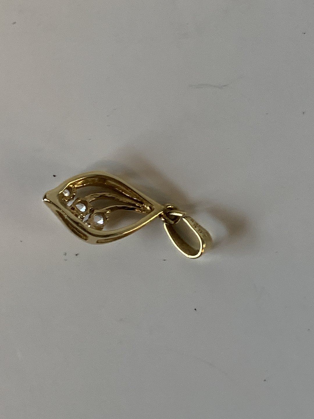 Vedhæng i 14 Karat guld og Måler 20,69*8,08 mm ca Varen er tjekket af guldsmed , og findes ikke fysisk i butikken, så kontakt os for fremvisning eller info