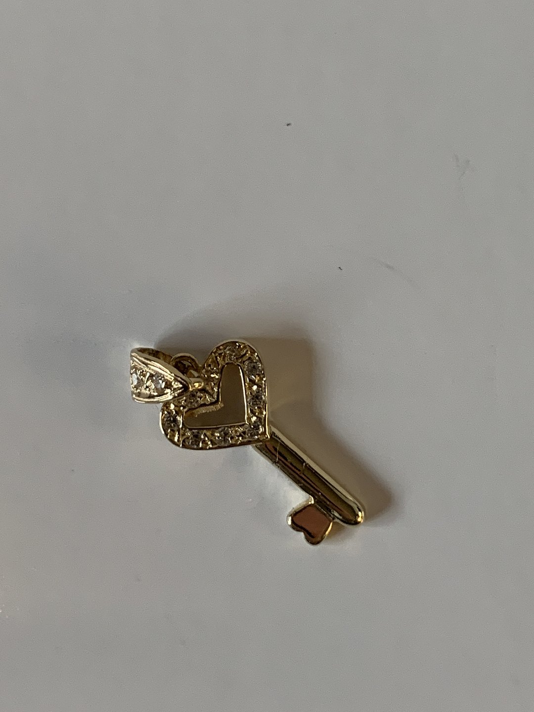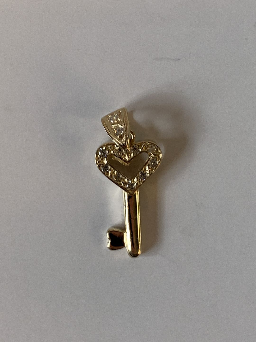 Nøgle vedhæng i Guld #14karat Stemplet 585 Højde 27,62 mm ca Brede 10,67 mm ca Varen er tjekket af guldsmed , og findes ikke fysisk i butikken, så kontakt os for fremvisning eller info