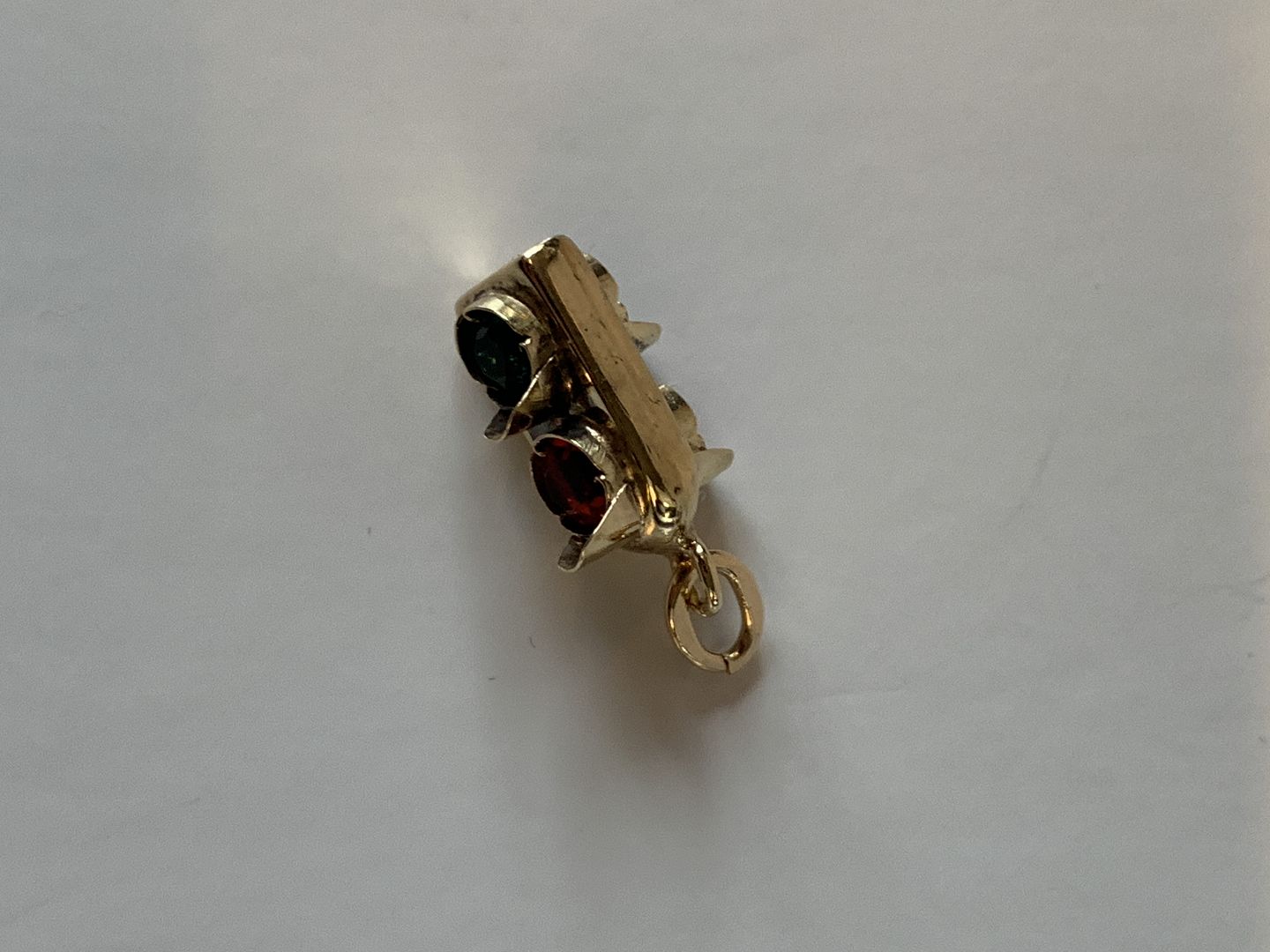 Trafiklys med røde og grønne sten Charms / Vedhæng i 14 karat