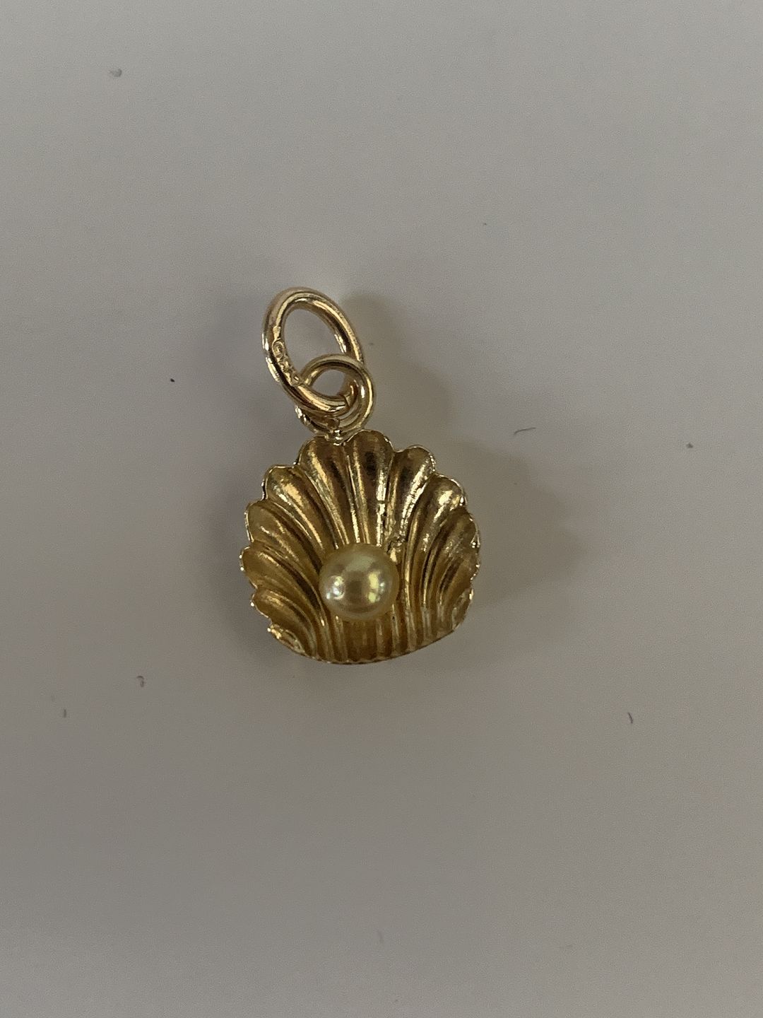 Musling med perle Charms / Vedhæng i 14 karat guld