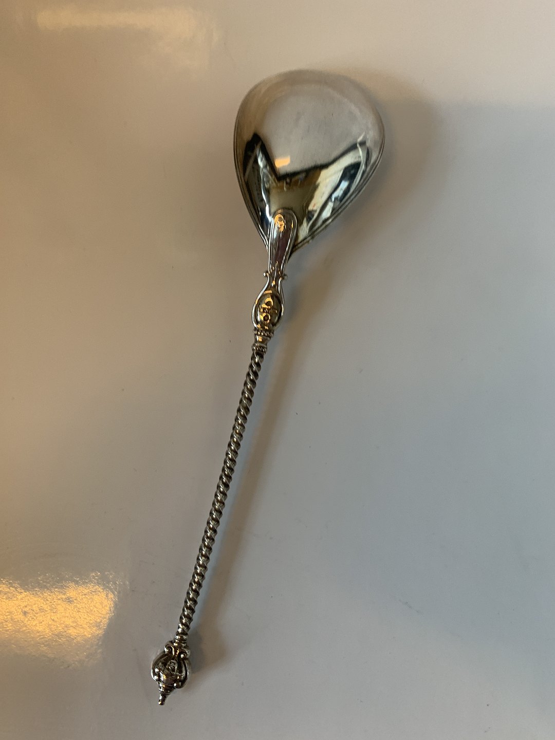 Serving spoon / Potato spoon in Silver Length approx. 23.3 cm Stamped year 1911 C.F.V.F. Neat and polished condition and packed in a bag