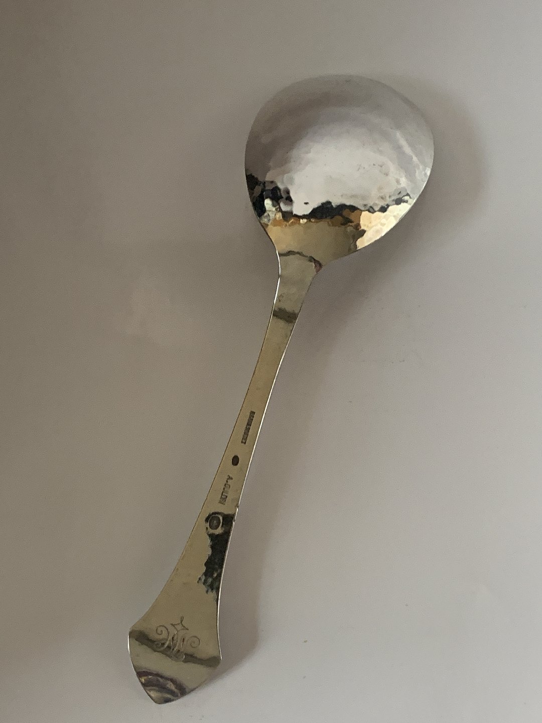Serving spoon / Potato spoon in Silver Length approx. 22.4 cm Stamped in 1933 Johannes Siggaard With Engraving Nice and polished condition Packed in bag