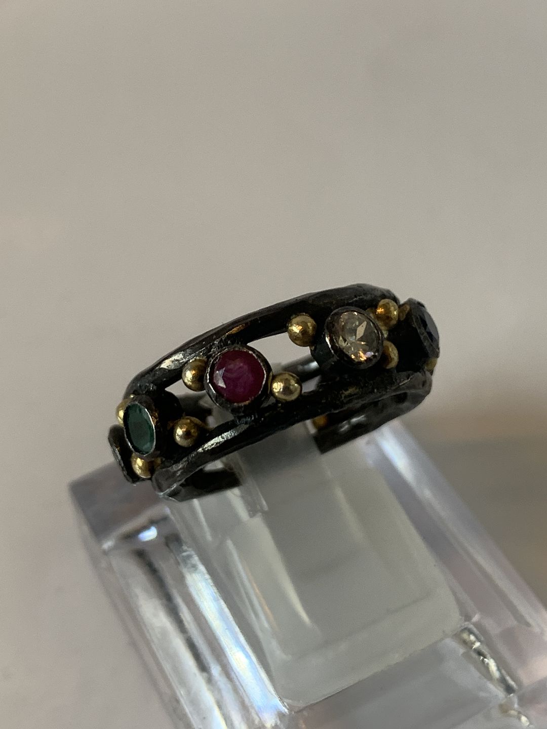 Silver Ring with Sapphire, Moonstone, Ruby, Citrine, Coral
