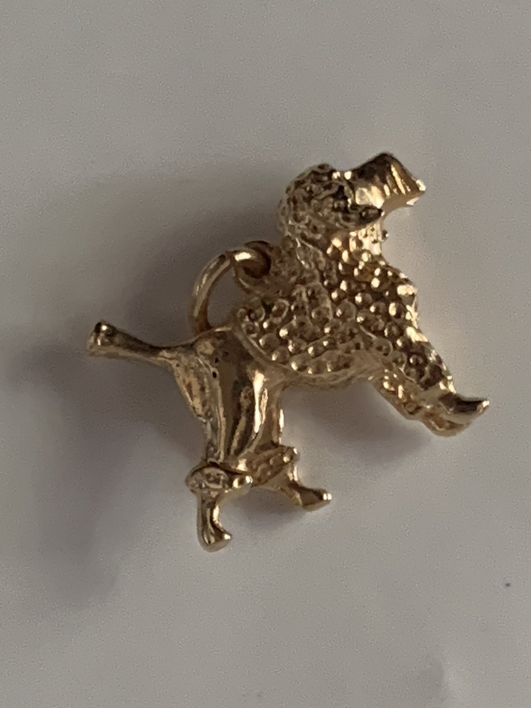 Konge Puddel hund Vedhæng #14karat Guld Stemplet 585 Højde 15,71 mm Brede 19,51 mm Pæn og velholdt stand Både vores sølv og guld er tjekket og pæn stand og findes ikke fysisk i vores butik, kontakt os for info eller fremvisning