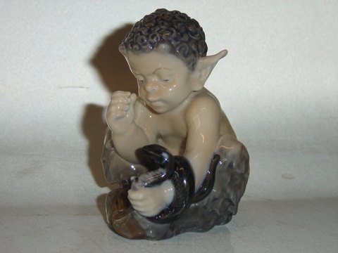 Royal Copenhagen Figurine, Faun with snake Decoration number 1712 Factory First Height 12 cm. Perfect Condition