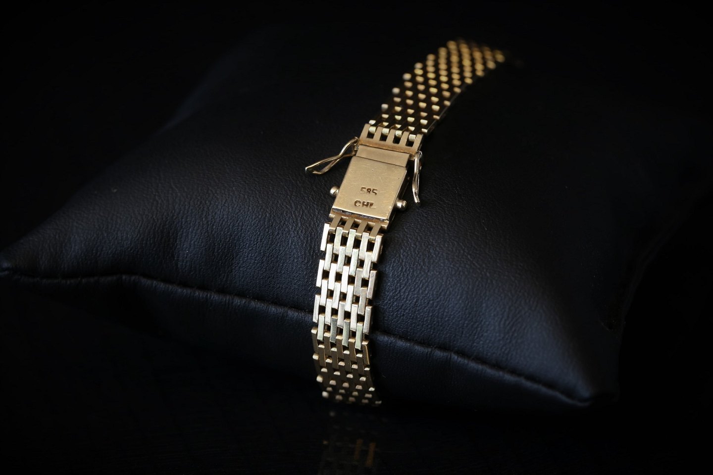 Gold bracelet, brick 9 rows in 14 carat 585 solid gold.