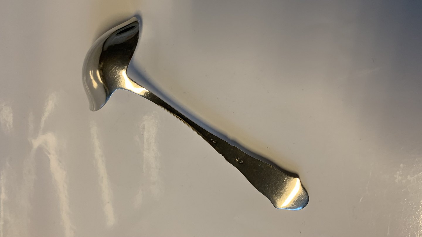 Sauce spoon in Silver Silver guard. Christian. Fr. Heise Stamped 3 Towers Length 17.9 cm. Well maintained condition All cutlery polished and bagged