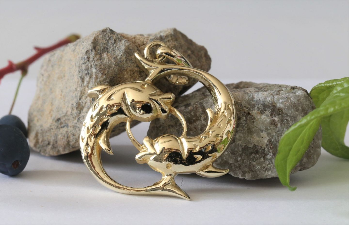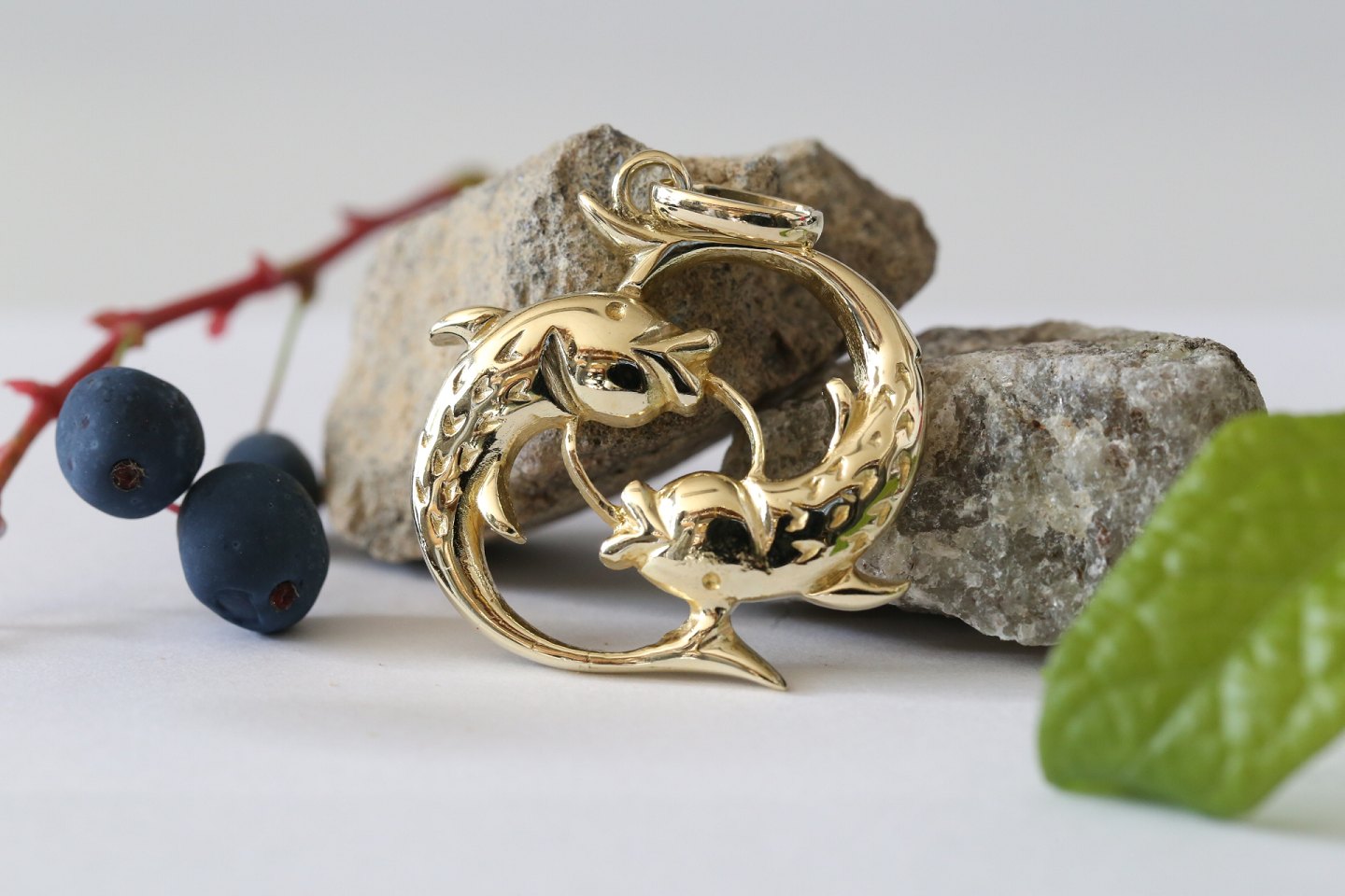 Dette smukke vedhæng kan bruges til både en halskæde, eller som charm i et armbånd. Det er detaljeret udført i fiskemotiv i 14 karat guld. Ideelt som stjernetegn i halskæde, og er flot detaljeret.