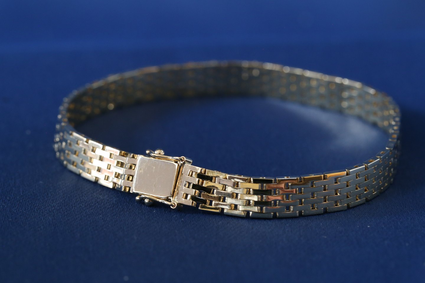 Elegant gold bracelet in 14 carat gold, with box lock. The gold bracelet is made like bricks in 7 rows, which gives the bracelet a discreet but elegant look on the wrist. The bracelet has a box lock, which makes it easy to open and close.