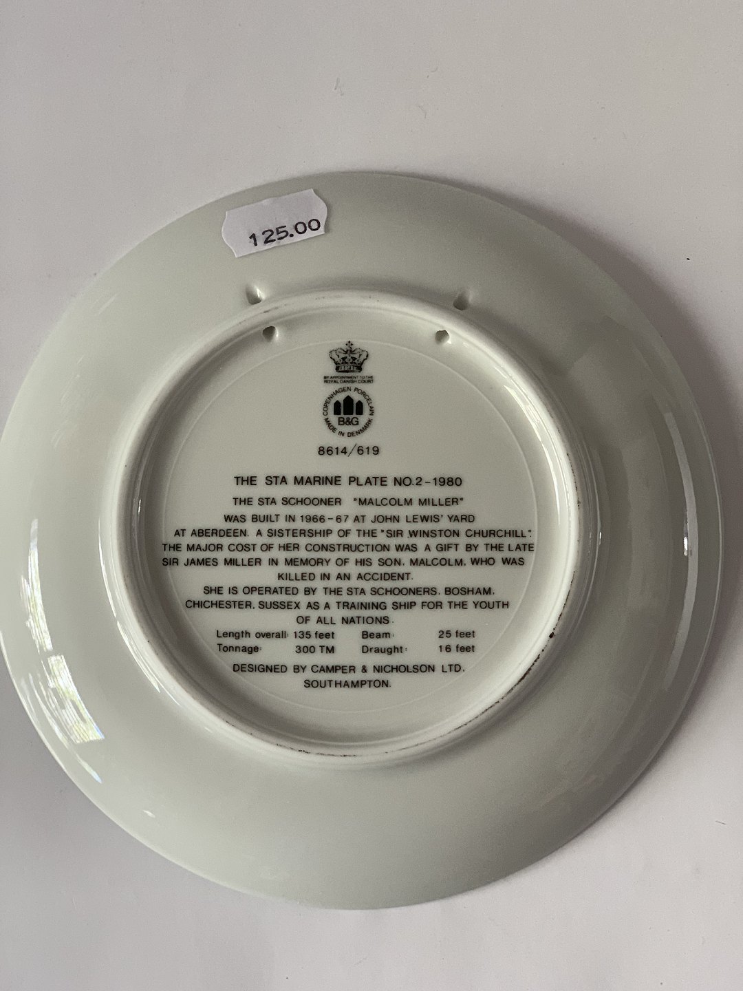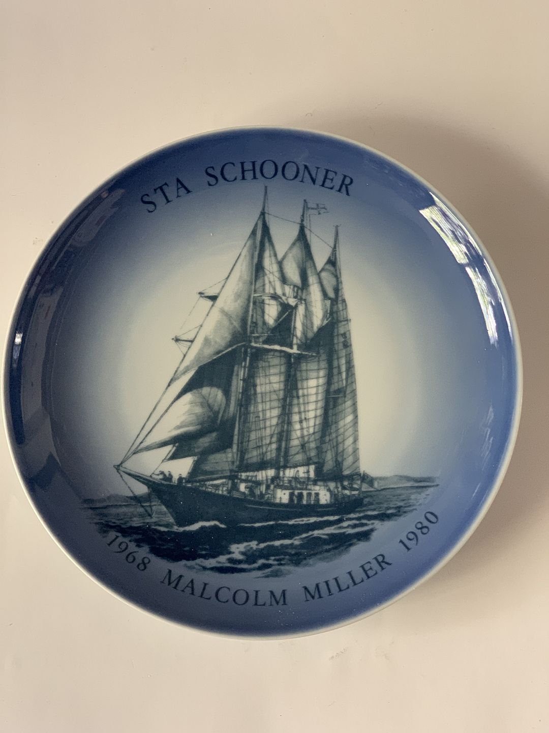 Bing and Grøndahl ship plate Deck no. 8614/619 Steady Schooner Malcolm Miller 1968-1980 Plate no. 2-1980 Measures 17.7 cm Nice and well maintained condition