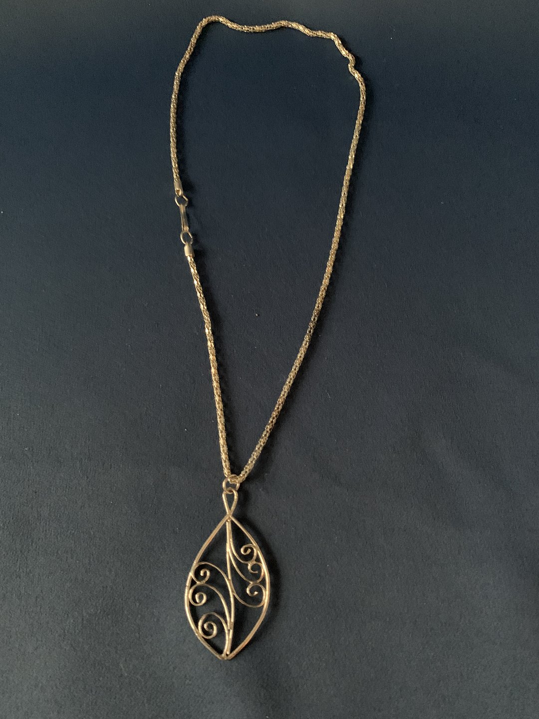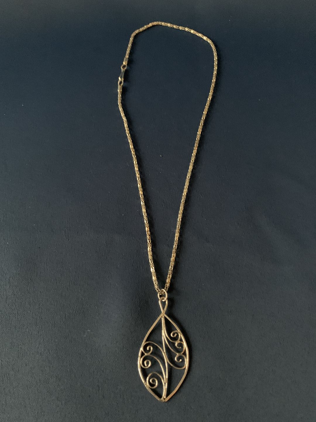 Beautiful necklace in sterling silver, with beautiful pendant with nice details. The pendant is shaped like a leaf, shaped in beautiful soft lines. The chain is 42 centimeters long and has a carabiner clasp. It is a beautiful piece of jewelery that suits both everyday life and parties.