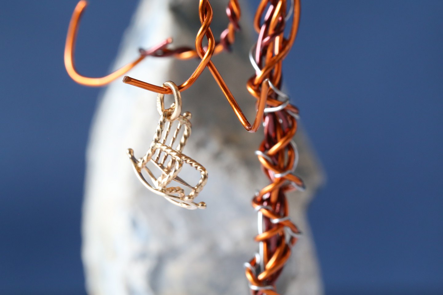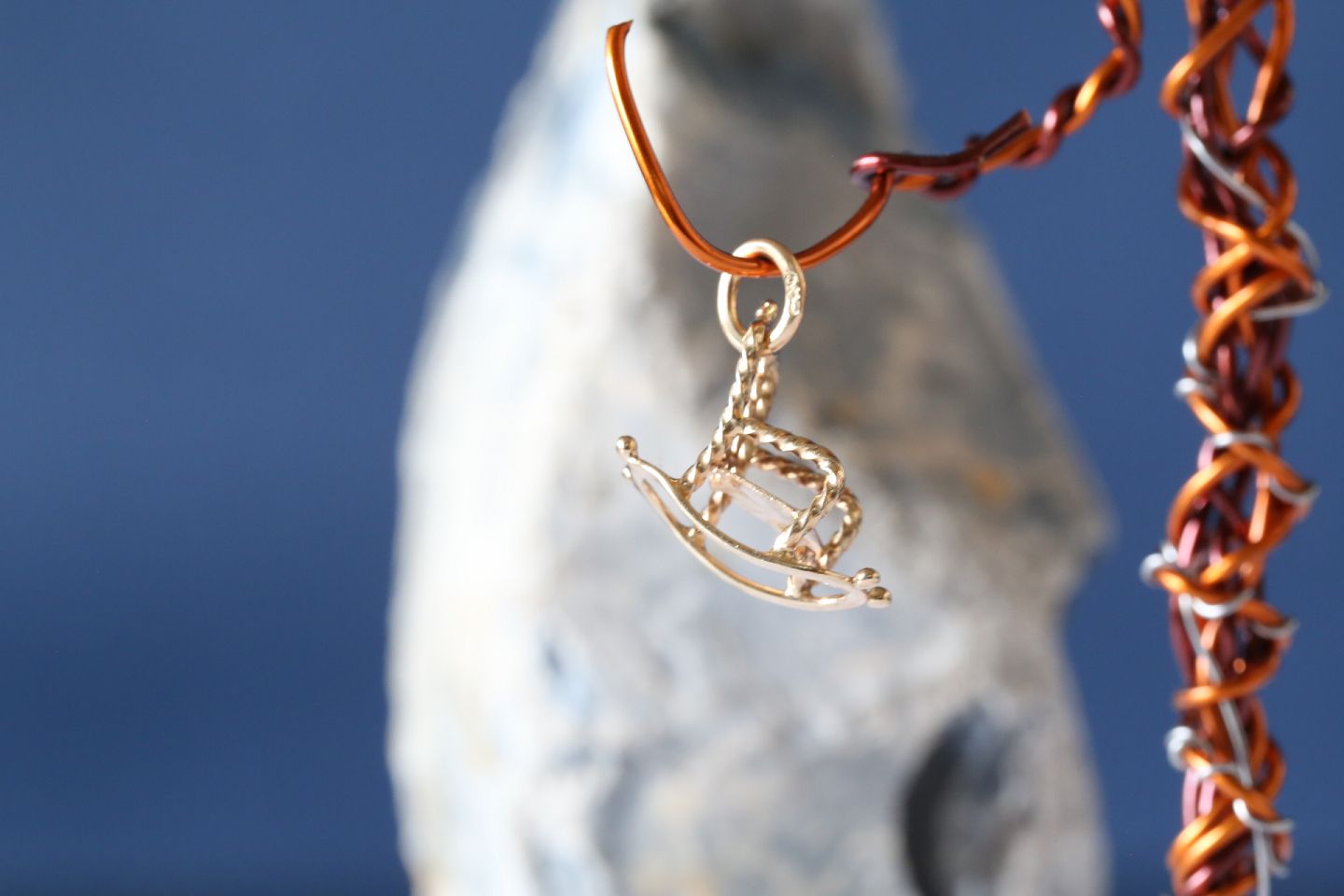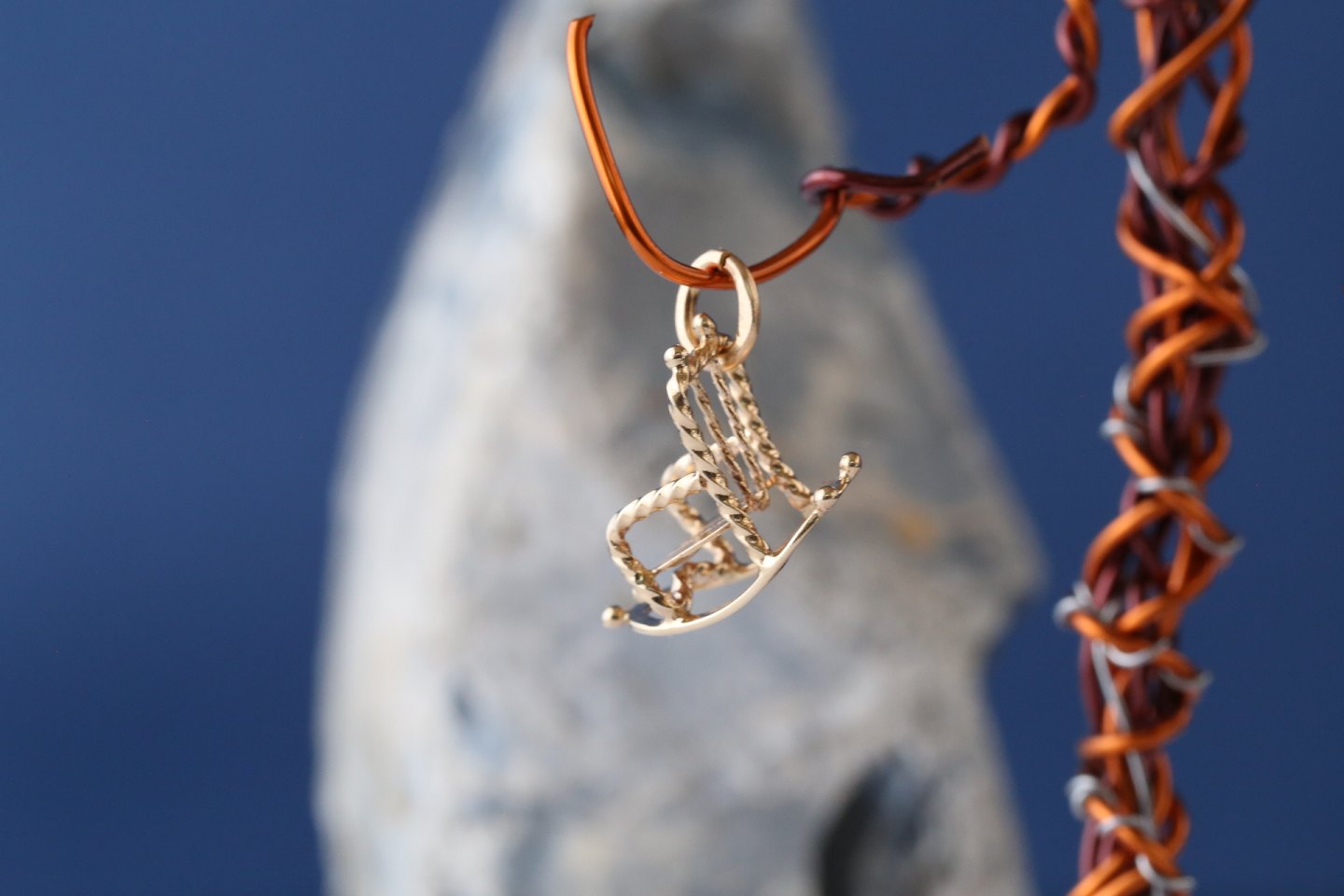 Gold pendant, made as a rocking chair in 14 carat gold. Stamped 585.