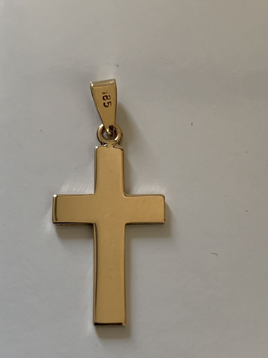 The timeless and iconic cross, worn in a necklace, is a classic necklace. The pendant is made of 14 carat solid gold, and with its size is a visible and beautiful pendant. The cross is made in a simple motif, without inscriptions or signs. Stylish and minimalist, which is great for all occasions and for all types of clothing.