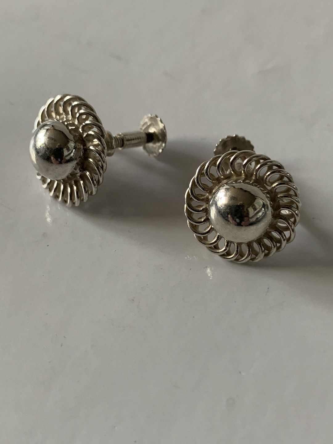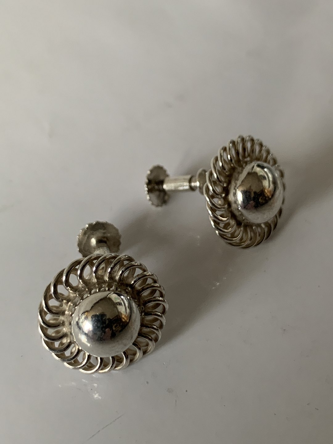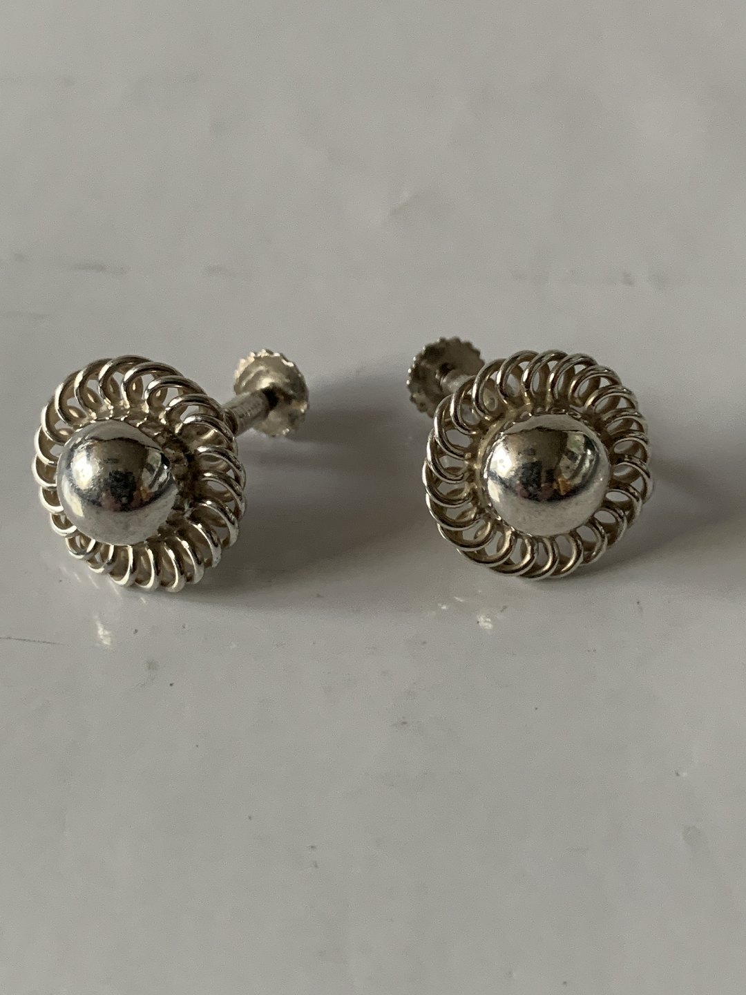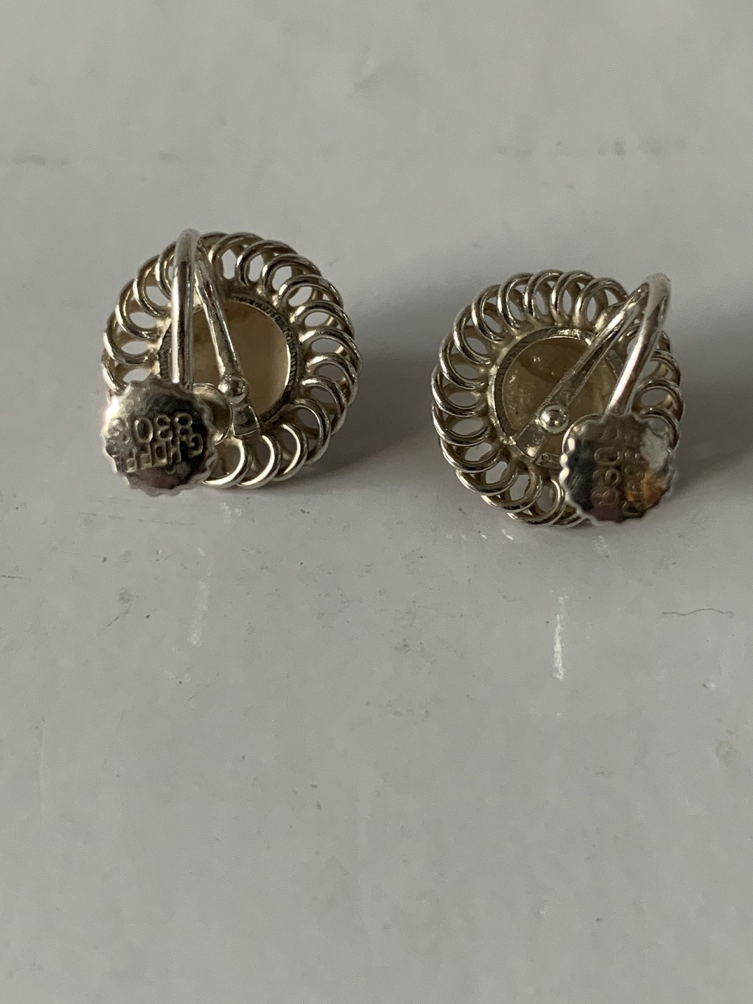 Earrings with screw in silver Stamped 830S G.HOPPE Diameter 14.64 mm Also try to see our large selection of other beautiful silver jewelery here. https://www.antikhuset.net/katindex.asp?kukat=597 Nice and well maintained condition