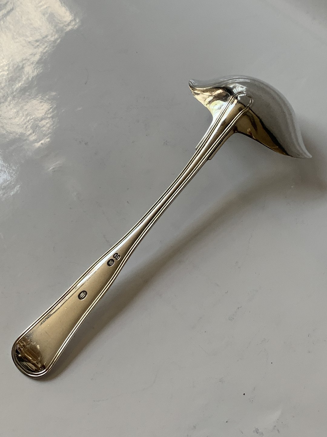 Dobbelt Riflet sølv Suppeske / Potage Suppeøse i t