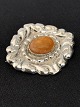 Silver brooch in 830 silver, with inlaid amber in the middle of the brooch.