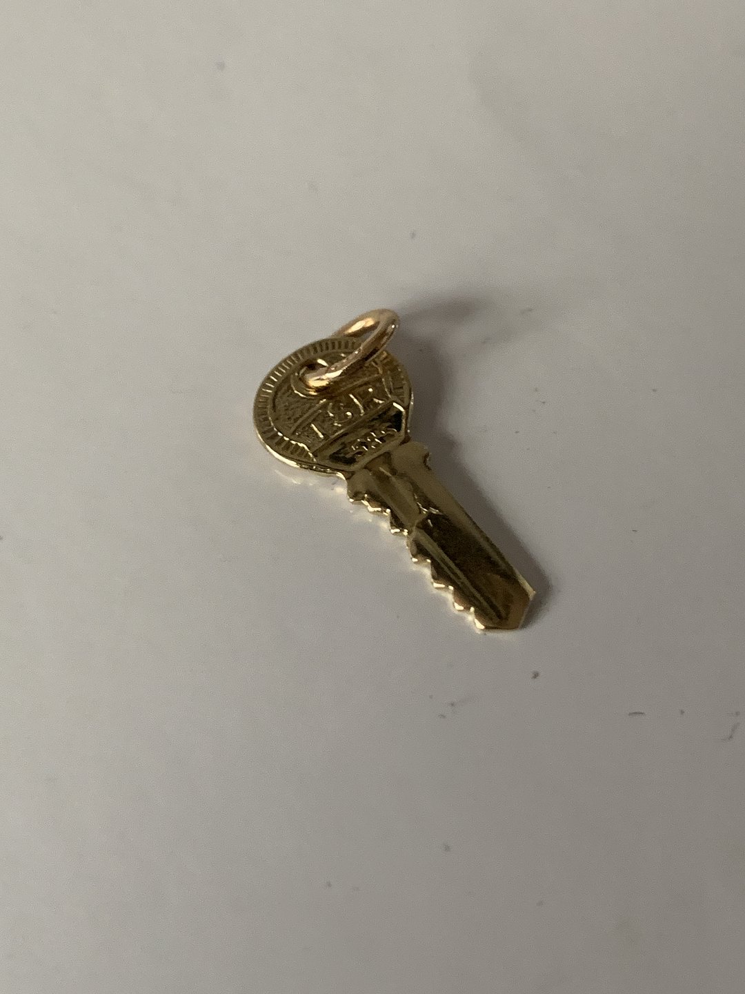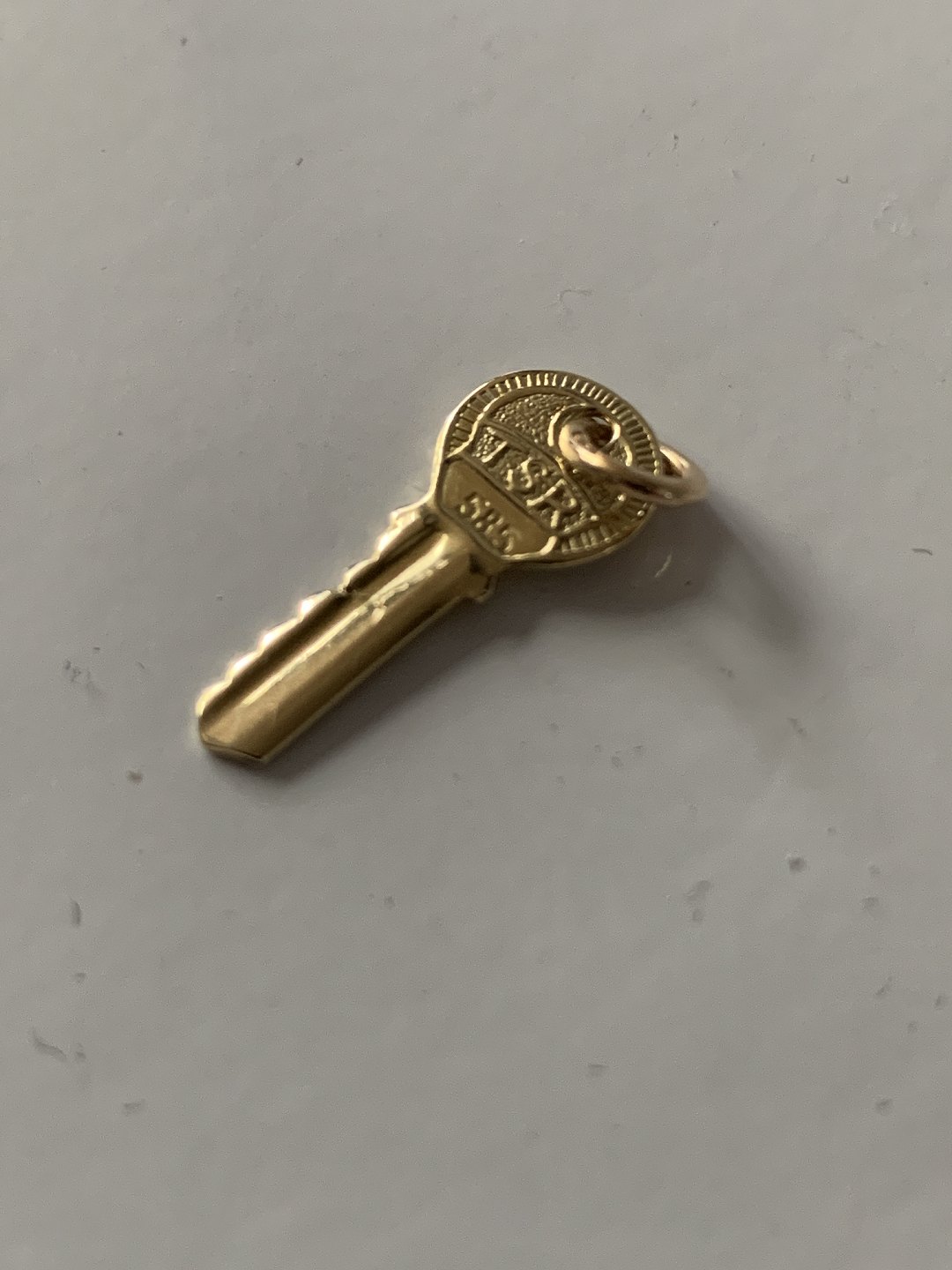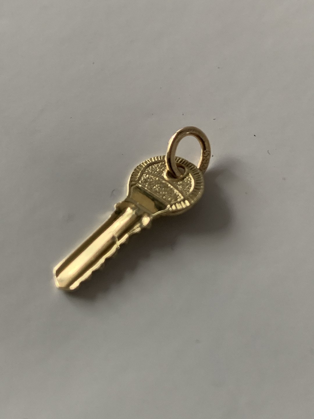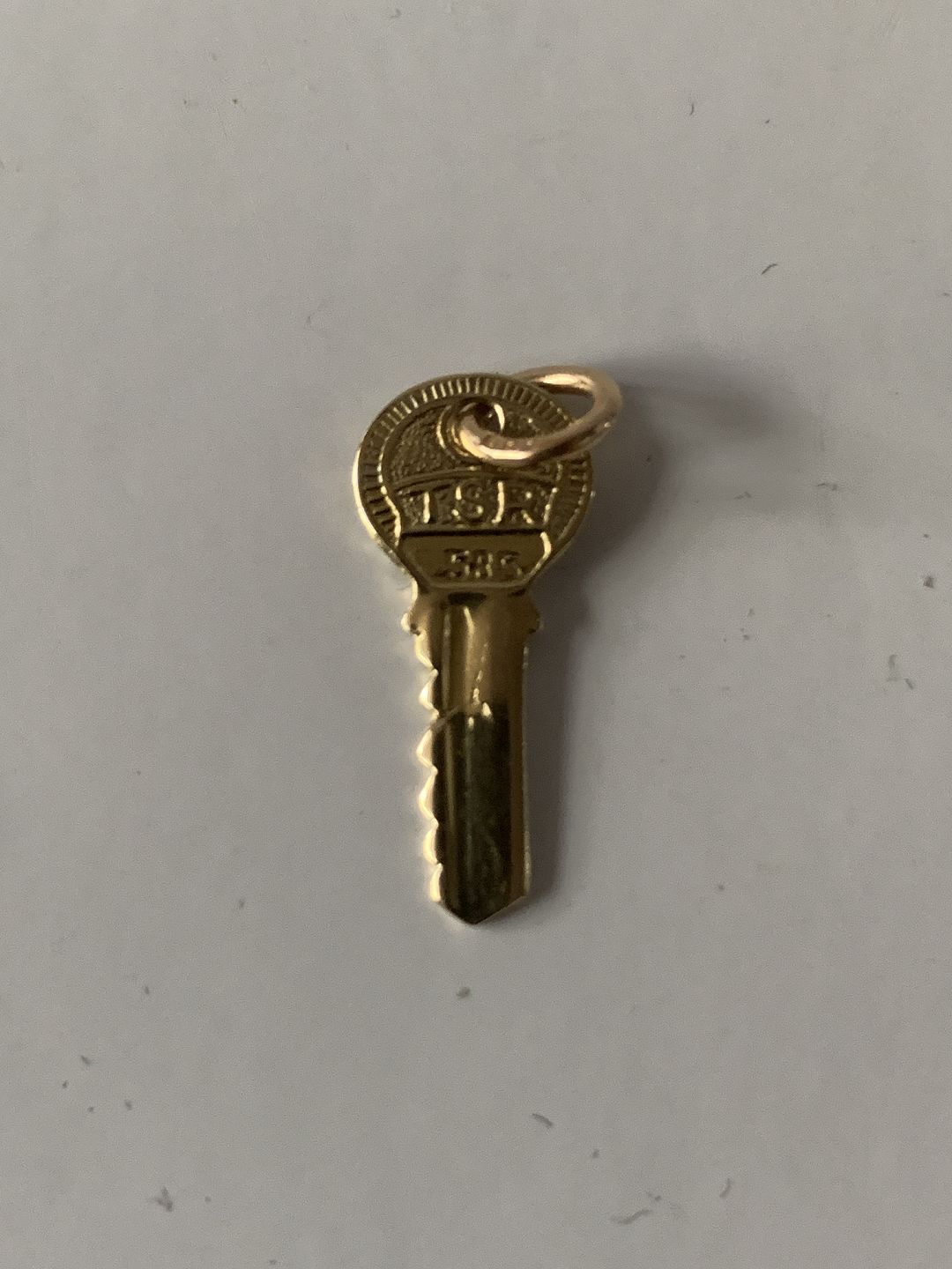 Charm for bracelet in 14 carat gold, stamped 585. Shaped like a key.