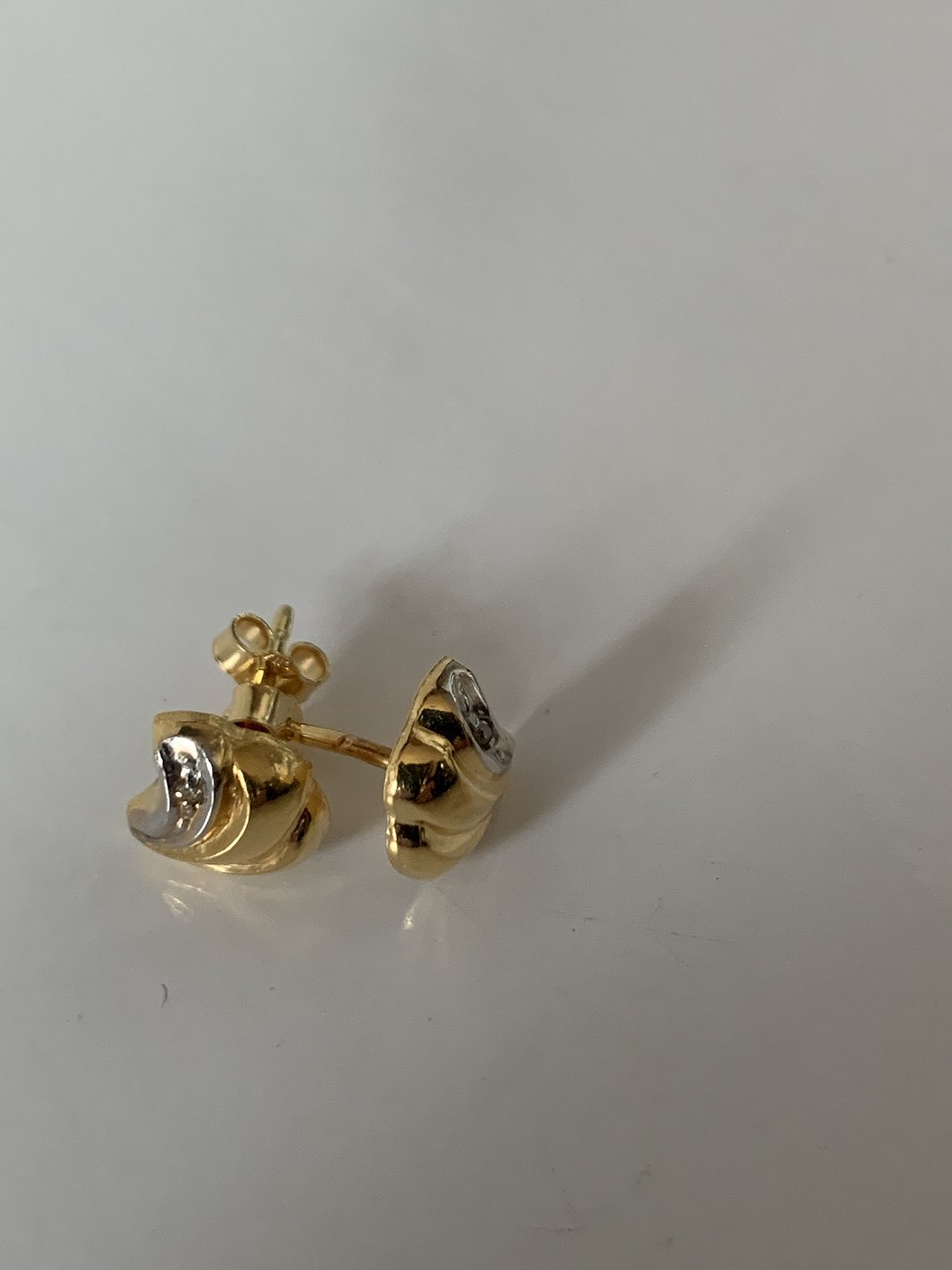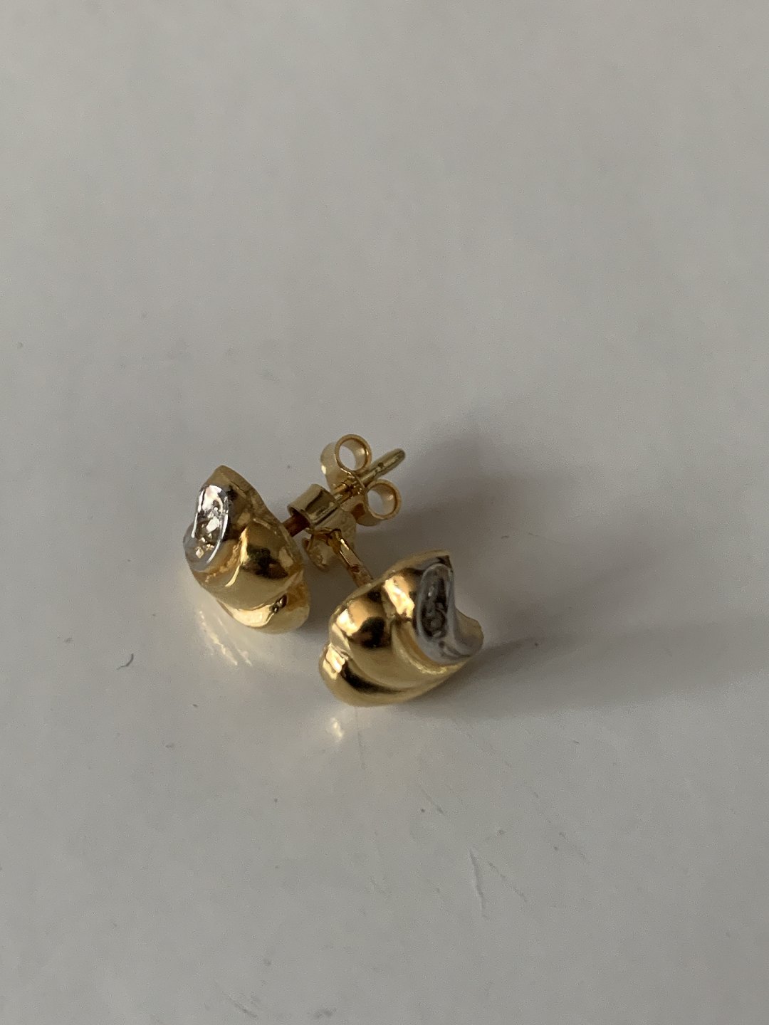 Beautiful studs in 14 carat red and white gold, with inlaid brilliants and a nice pattern. The ear studs are made with soft lines that give these studs a beautiful and elegant look. Can be advantageously combined with a nice necklace or bracelet.