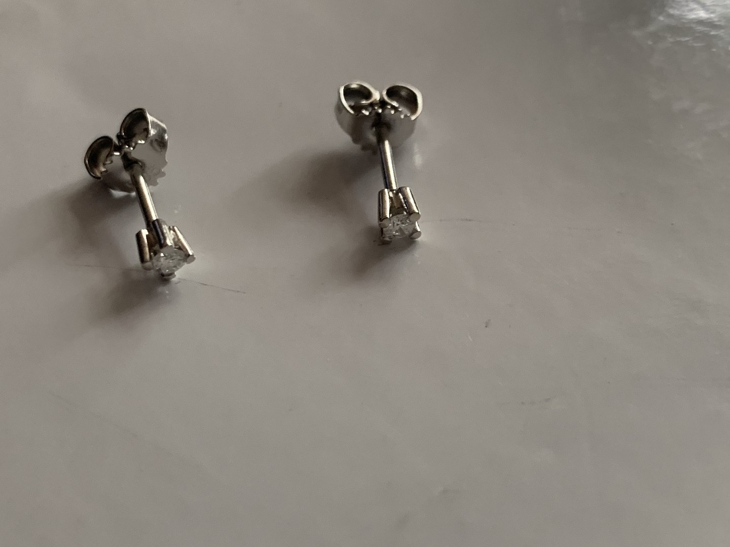 Nice little studs in 14 carat gold, with inlaid brilliant. The ear studs are small and discreet, yet elegant in the earlobe. Since the ear studs are so small, they can be advantageously combined with other earrings.