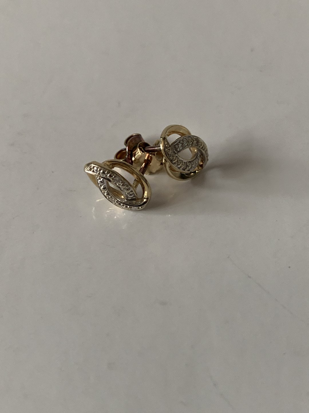 Beautiful studs in 14 carat white and red gold, with inlaid brilliants and a nice pattern. The ear studs are made with soft lines that give these studs a beautiful and elegant look. Can be advantageously combined with a nice necklace or bracelet.