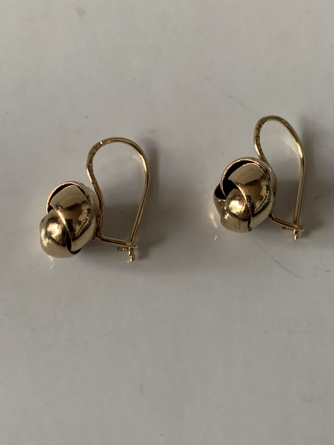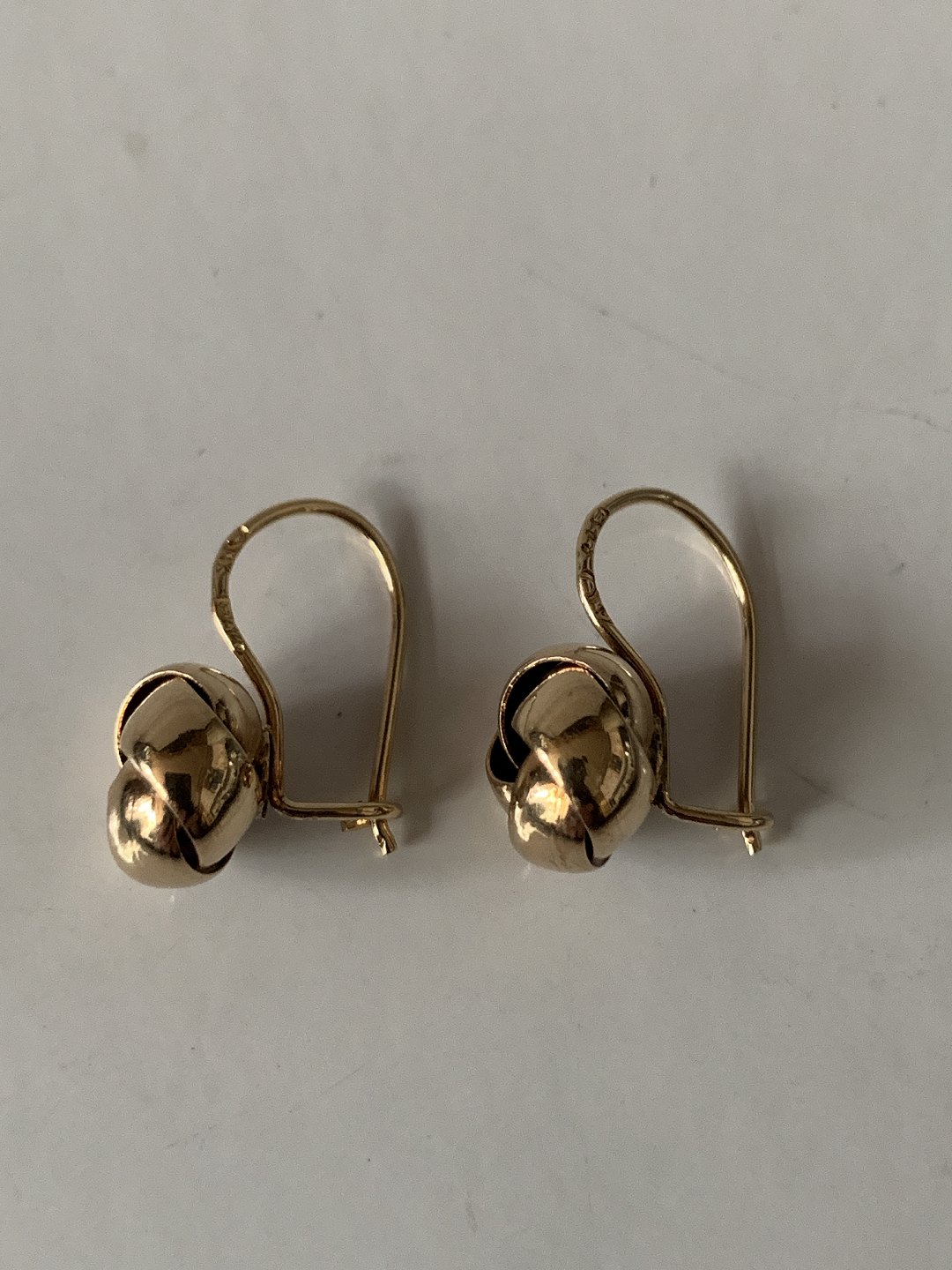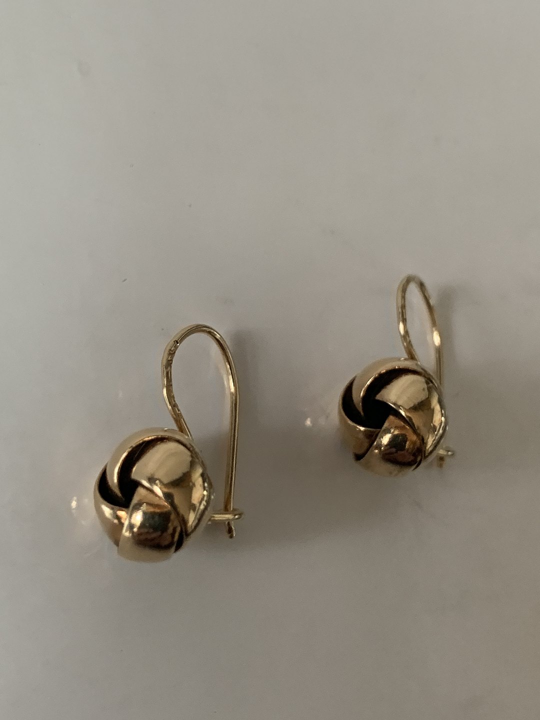 Smukke øreringe støbt Knudeformet, og med stort øsken i 14 karat guld. Disse øreringe er meget stilrene, og vil passe til nærmest enhver påklædning, og til enhver lejlighed. Kan matches med en gulkæde, eller armbånd.
