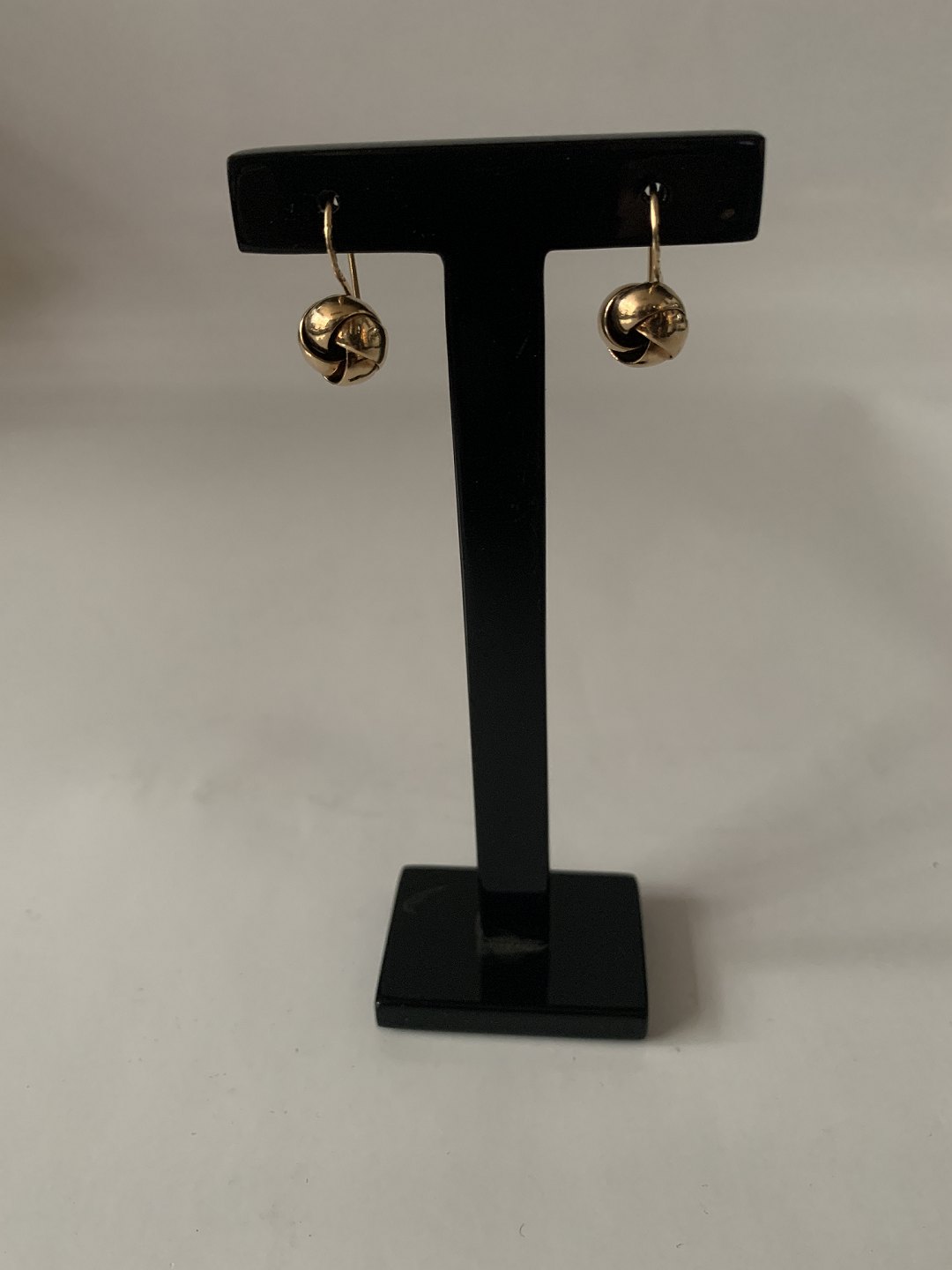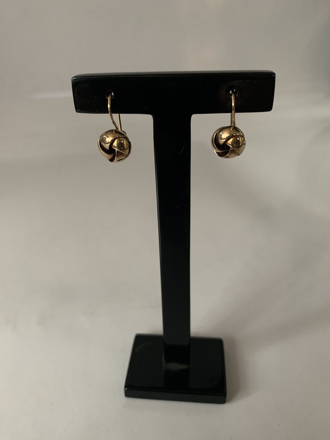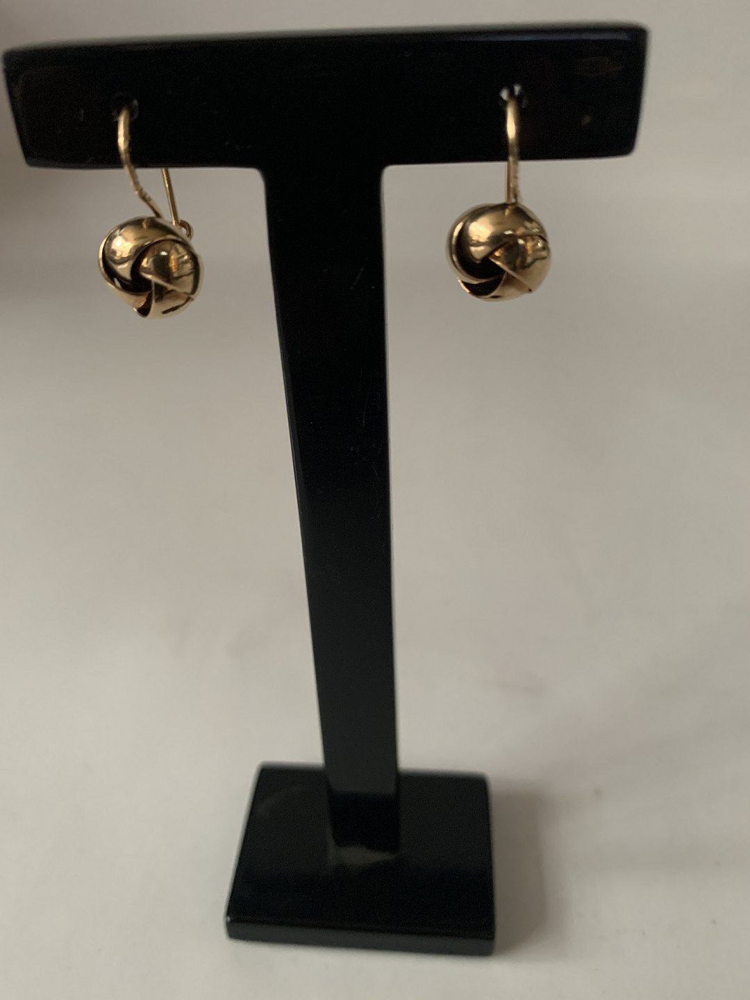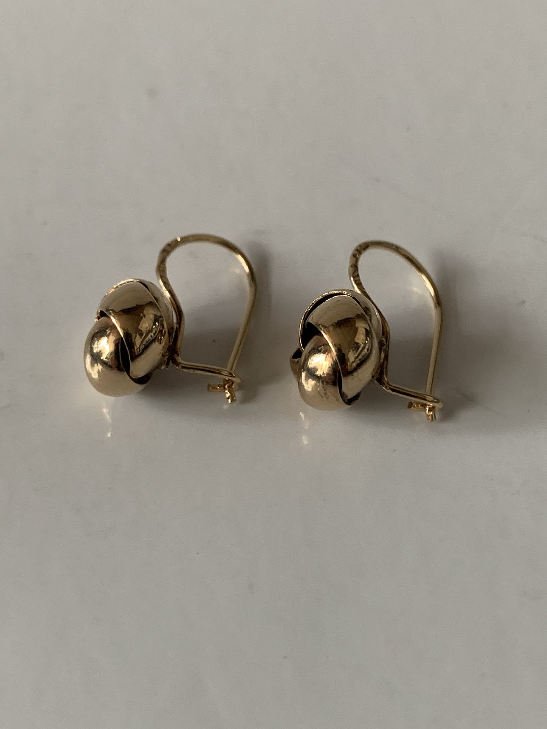 Smukke øreringe støbt Knudeformet, og med stort øsken i 14 karat guld. Disse øreringe er meget stilrene, og vil passe til nærmest enhver påklædning, og til enhver lejlighed. Kan matches med en gulkæde, eller armbånd.