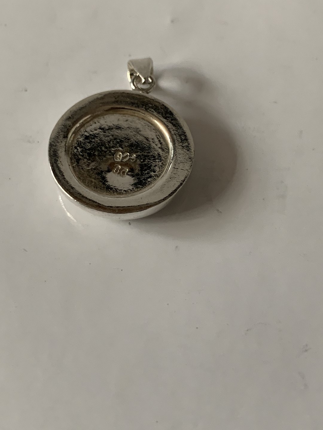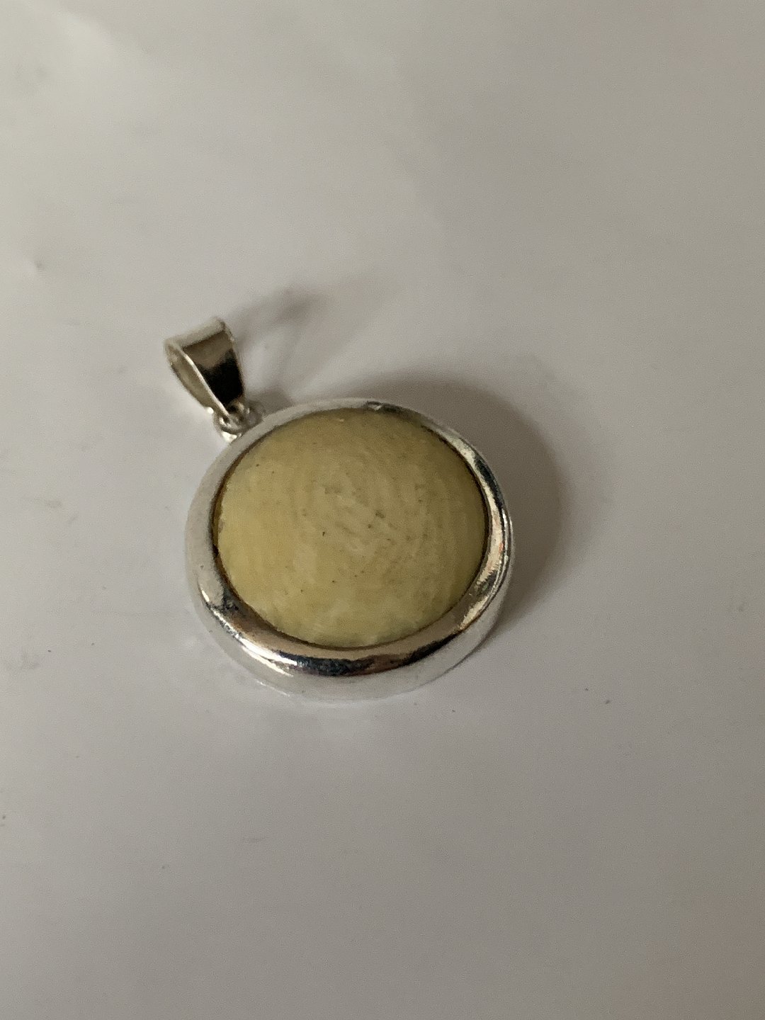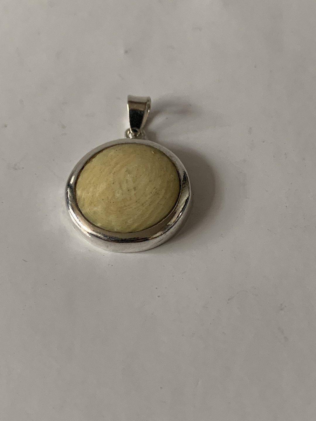 Silver pendant with inlaid bone.