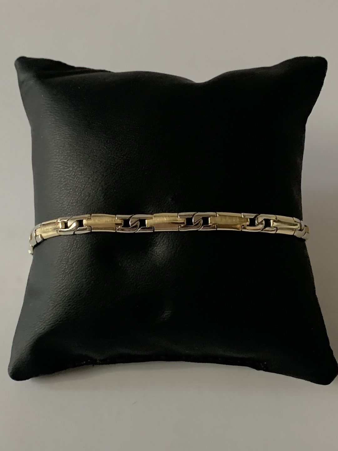 Gold bracelet in 14 carat solid red and white gold. Beautiful and discreet pattern that makes the bracelet stylish. The red gold is brushed matt, in contrast to the white gold. This gives the bracelet dynamism and life.