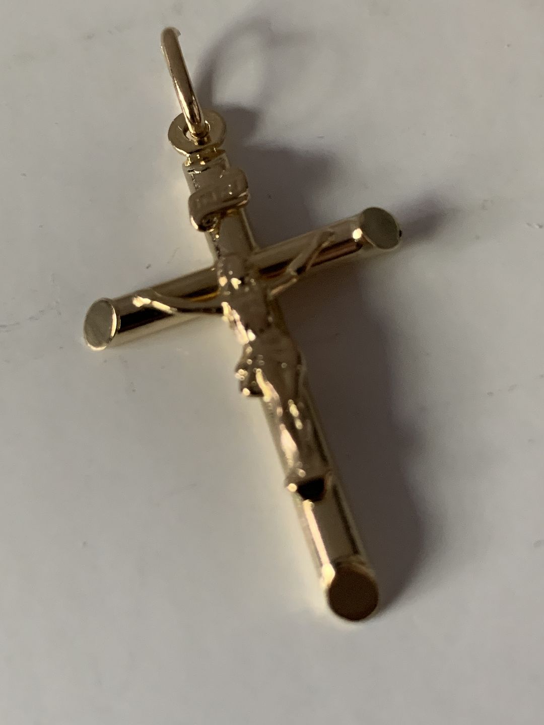 Kors Vedhæng i 14 karat GuldStemplet: 585 H. 41,39 X B. 21,21 mm Tykkelse. 2,94 mm Smykket findes ikke i vores butik, men kontakt os gerne for en fremvisning i butikken.