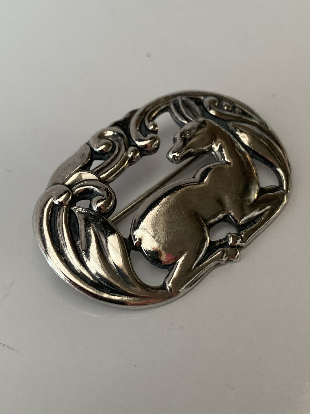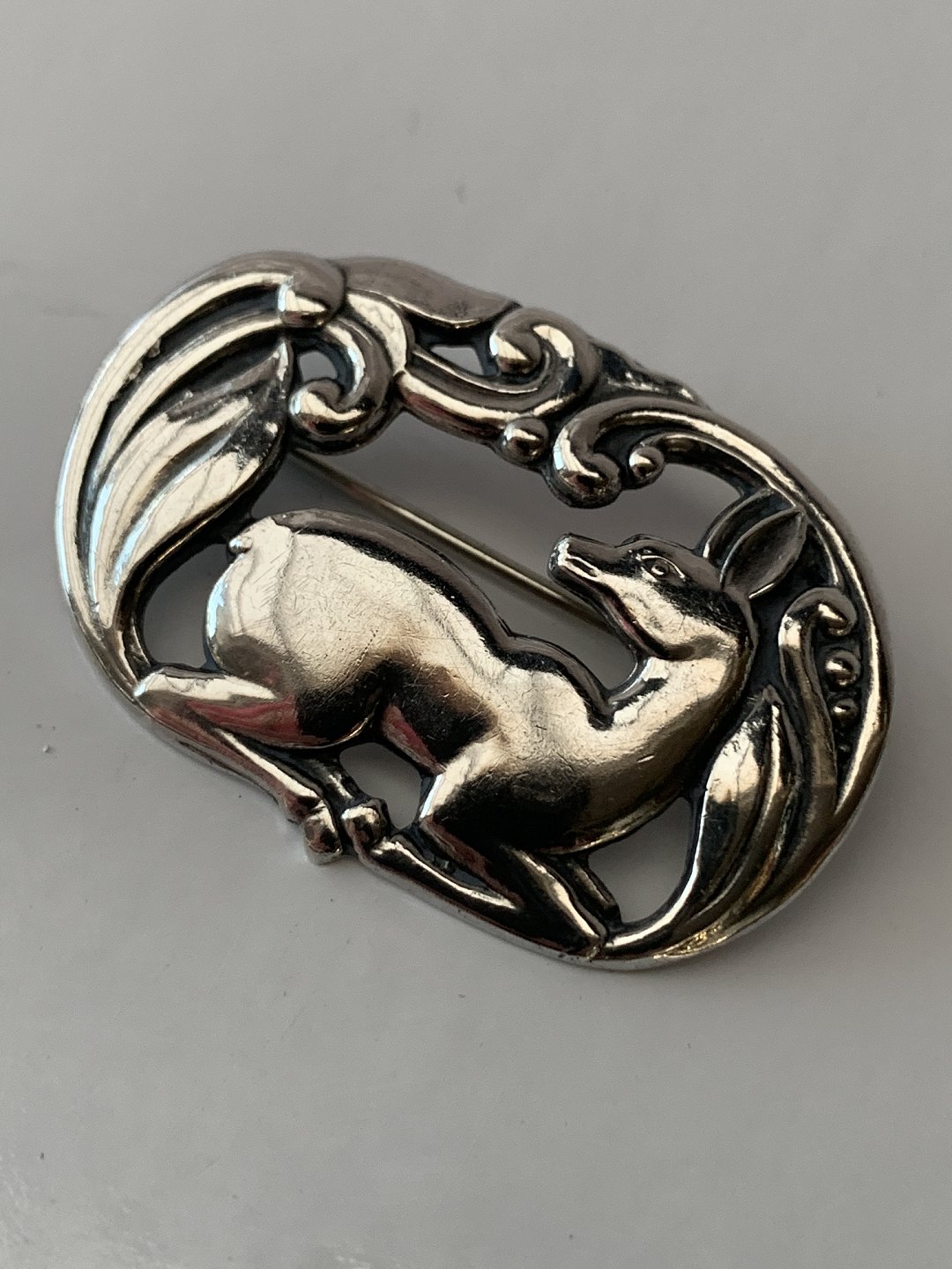 Brooch in silver motif Fawn Stamped E&M 830S Measures 3.9 cm length Height 2.7 cm See also our large selection of brooches and other beautiful gold and silver jewelery here: https://www.antikhuset.net/katindex.asp?kukat=597
