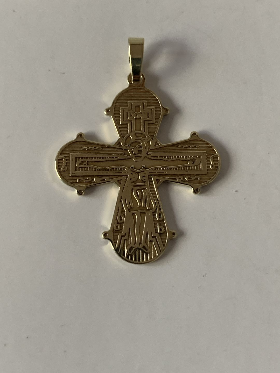 Daymark cross with the suffering Christ on the front, and the 5 "big" ones on the back.