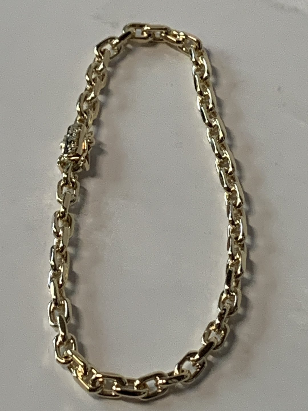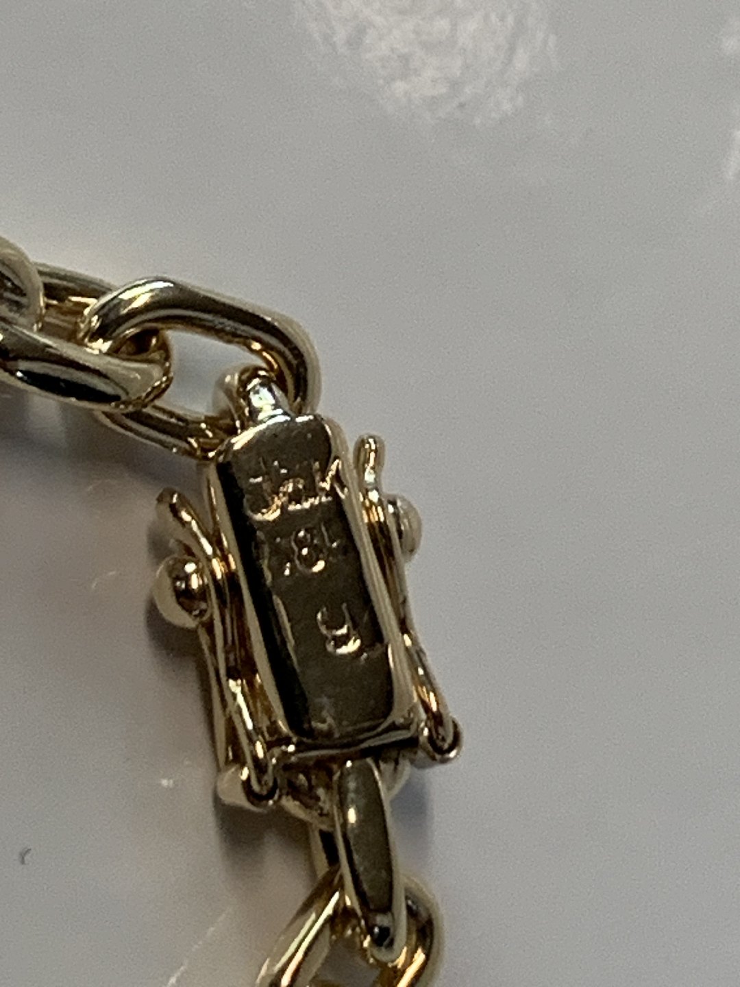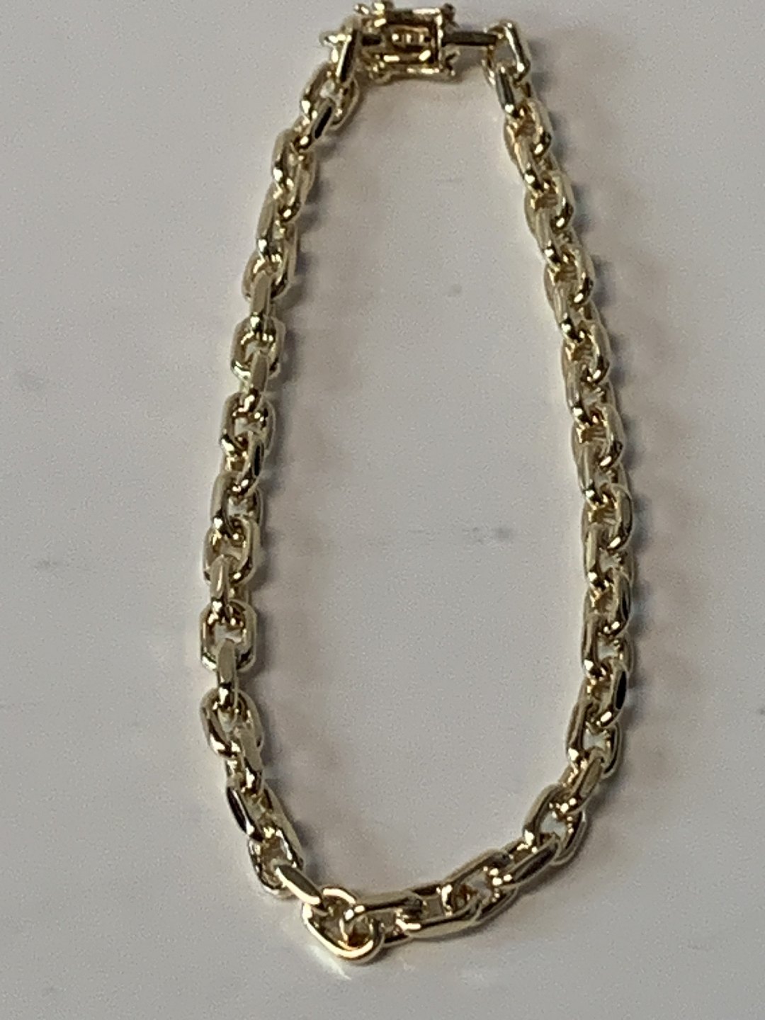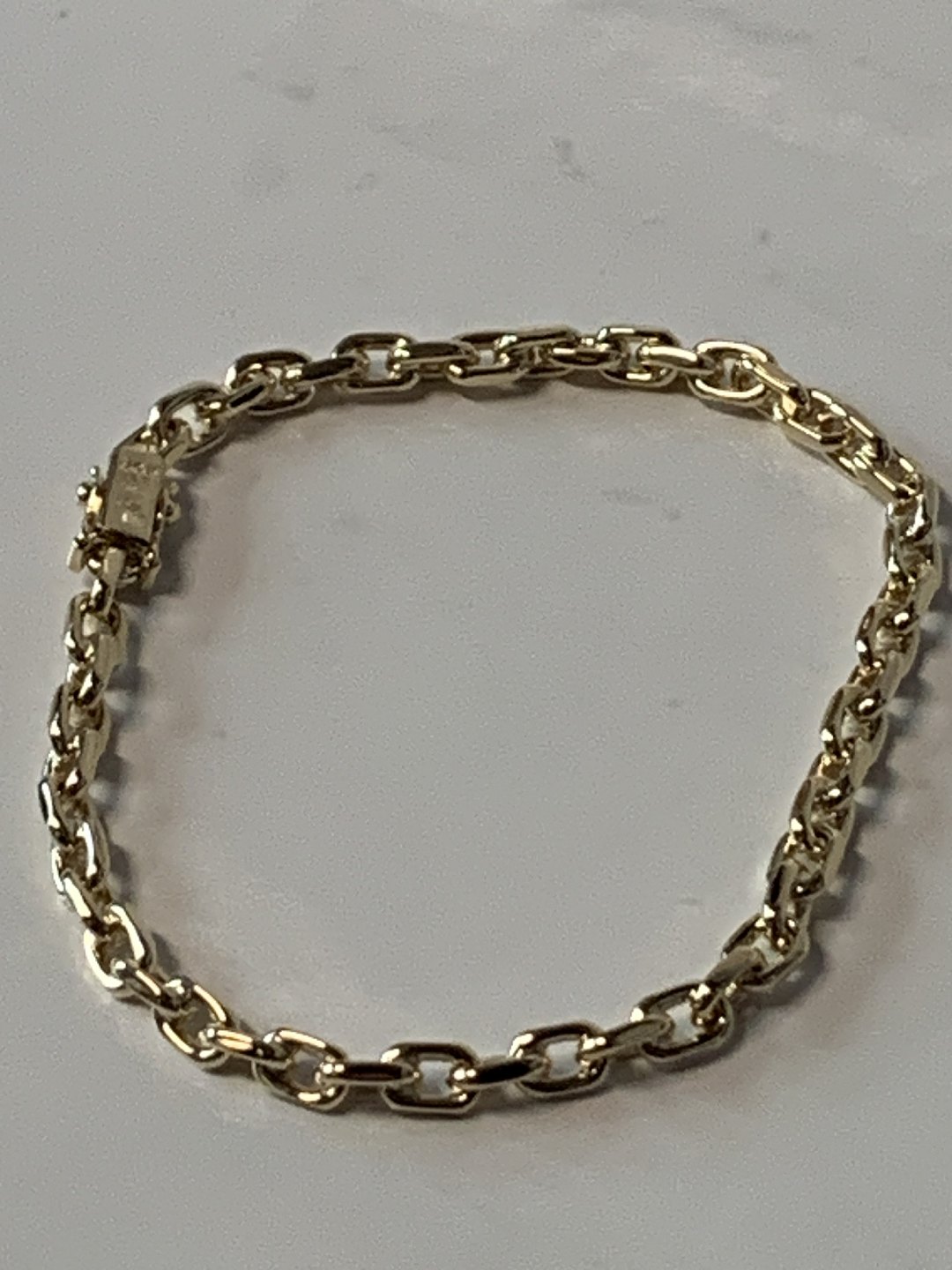 Beautiful gold bracelet in 14 carat gold with box lock. The chain is made with simple links that make the chain discreet but at the same time elegant. It is minimalistic around the arm, and if desired, charms can be hung on the chain.