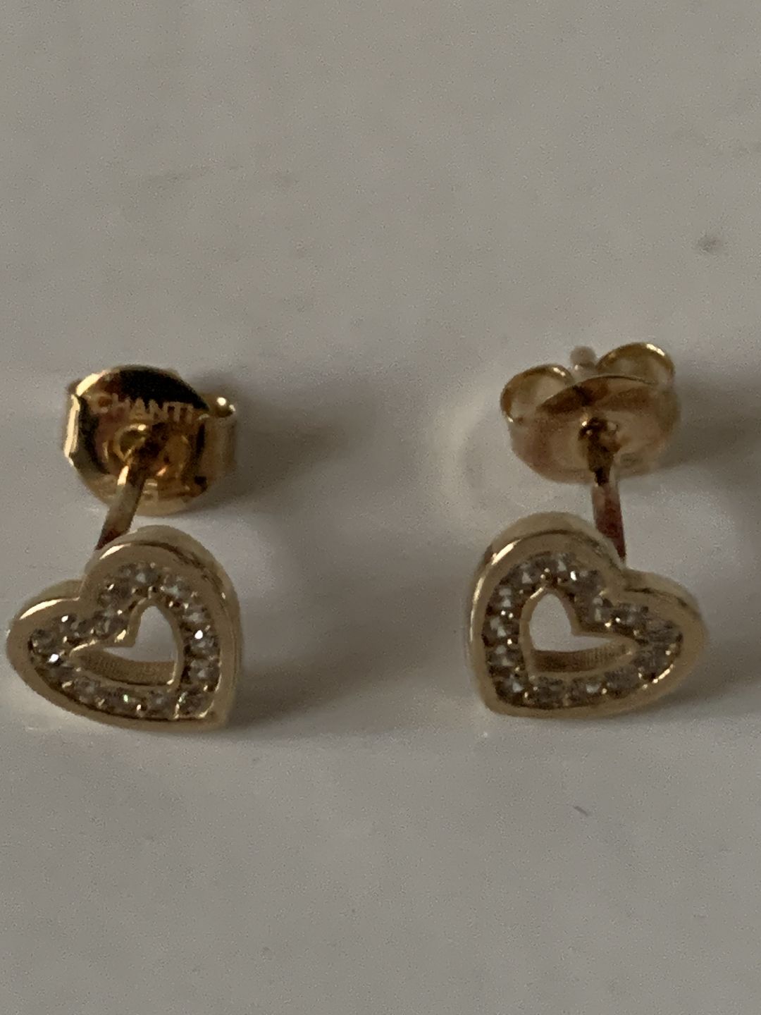 Beautiful heart studs in 9 carat gold, with embedded zircons. The ear studs are small and discreet, yet elegant in the earlobe.