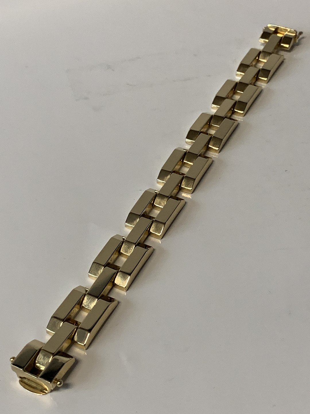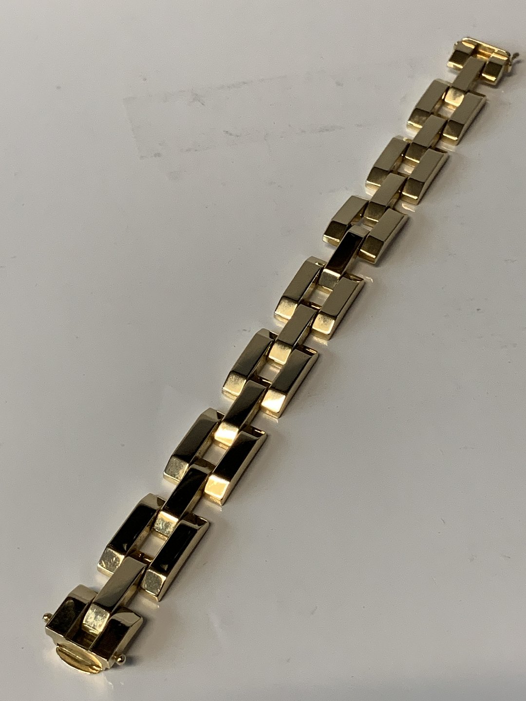 Flot klassisk Blok guldarmbånd i 14 karat guld, med 3 rækker og kasselås. Armbåndet er designet i det klassiske Blok-mønster.