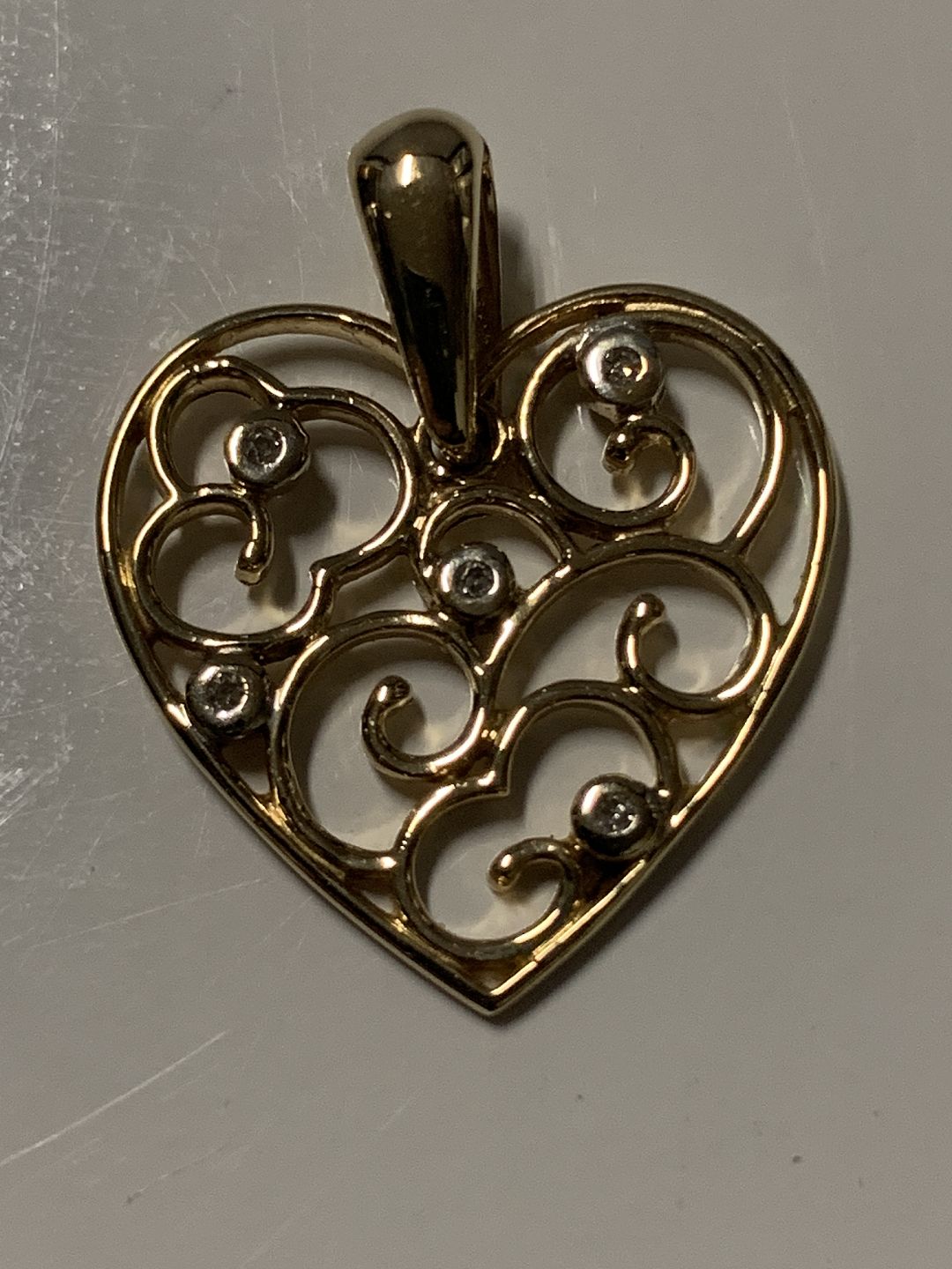 Beautiful pendant, shaped like a heart with embedded diamonds, in 14 carat gold. Suitable for a necklace or as a pendant in a bracelet.