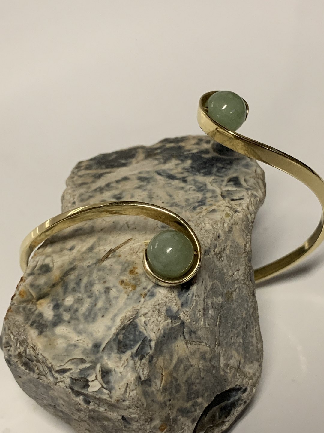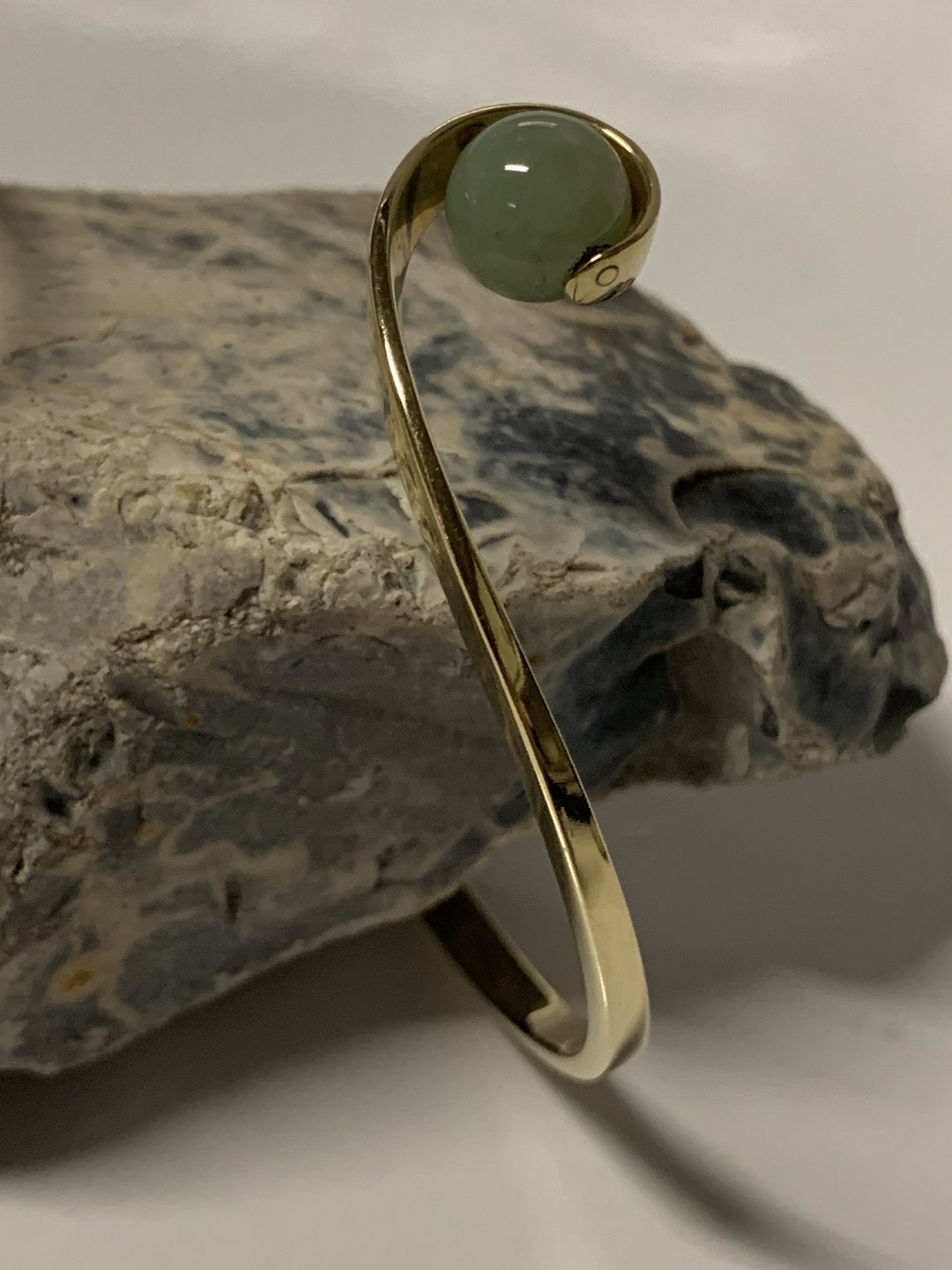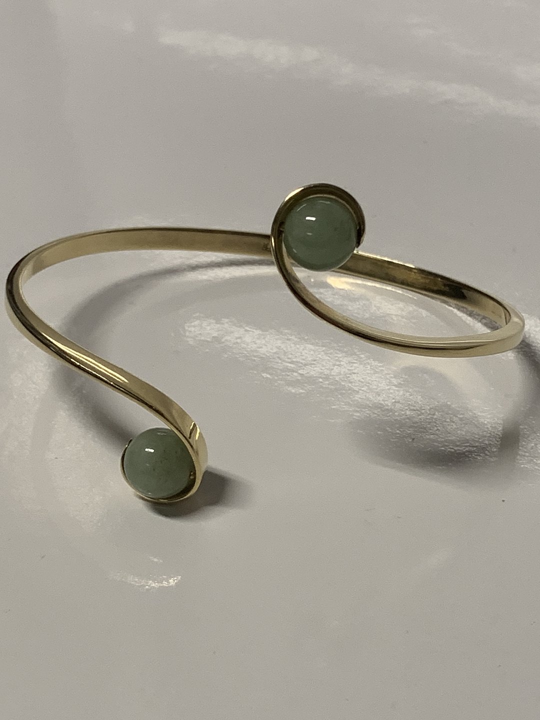 Fleksibel armring i 14 karat guld med aventuriner, som fylder flot på armen.
